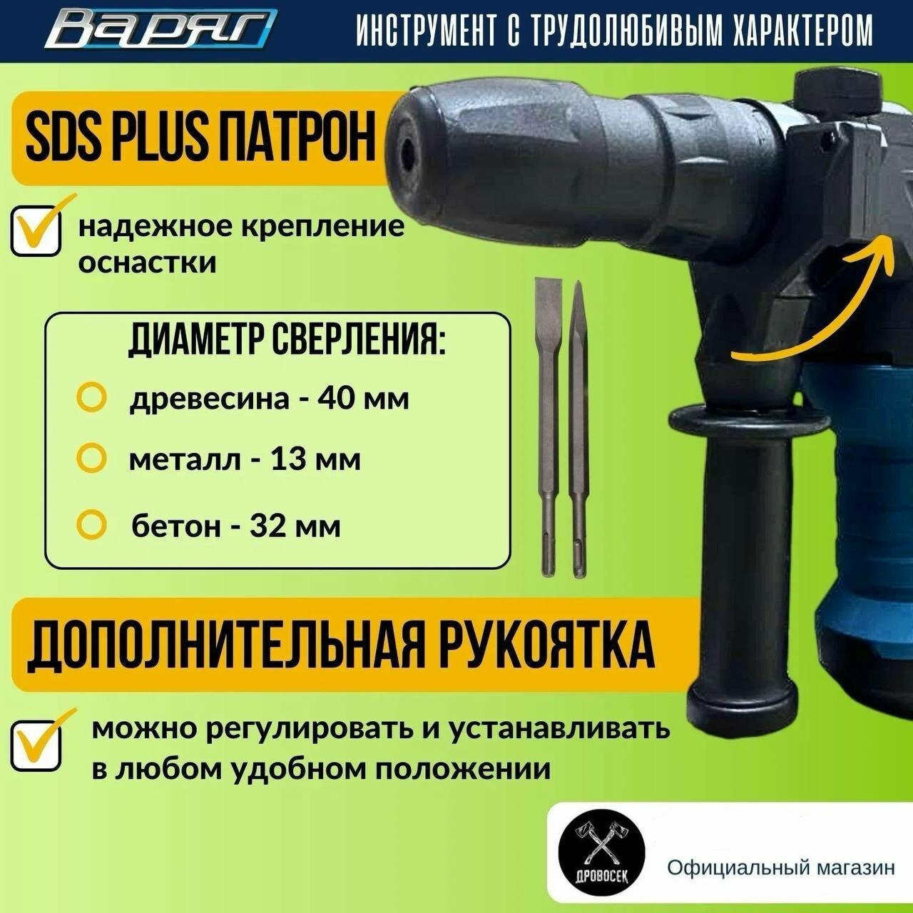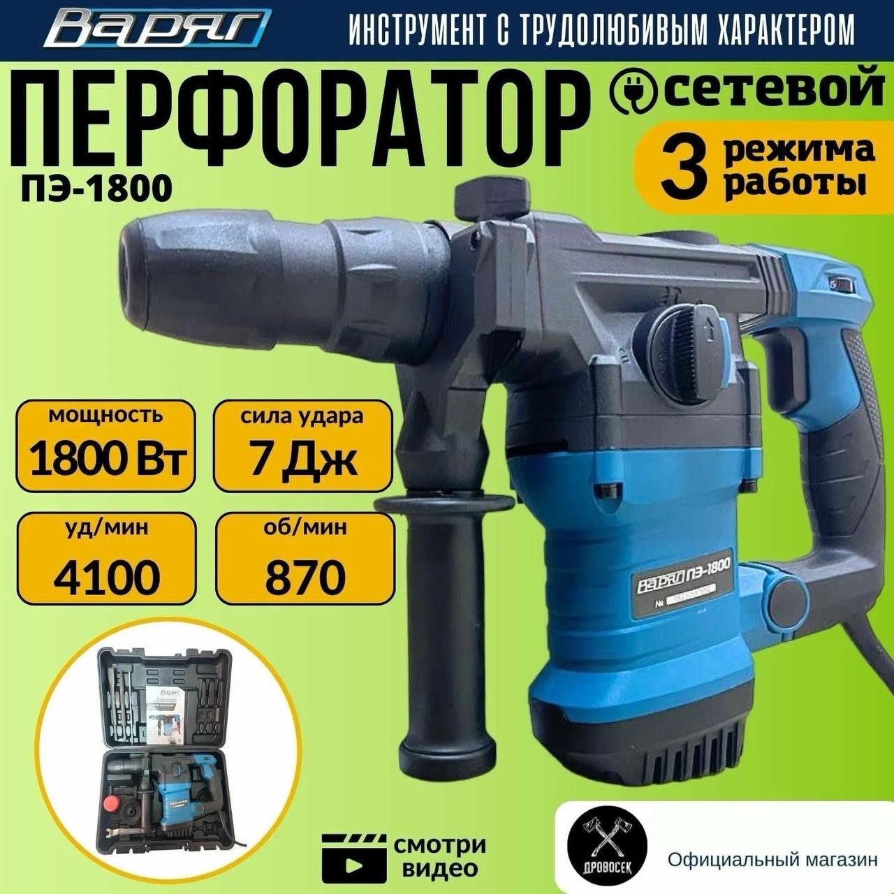 Перфоратор SDS-Plus Варяг ПЭ-1800 сетевой (1800 Вт, 260-870 об/мин, 1200-4100 уд/мин, 7 Дж, 3 реж, SDS+) электрический, в кейсе, от сети информация: