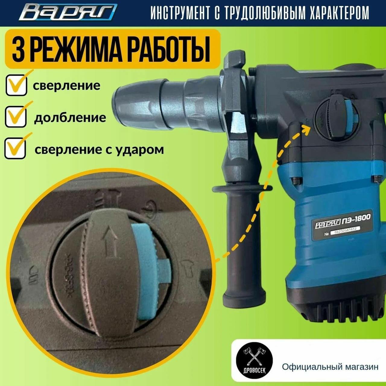 Отзывы на Перфоратор SDS-Plus Варяг ПЭ-1800 сетевой (1800 Вт, 260-870 об/мин, 1200-4100 уд/мин, 7 Дж, 3 реж, SDS+) электрический, в кейсе, от сети