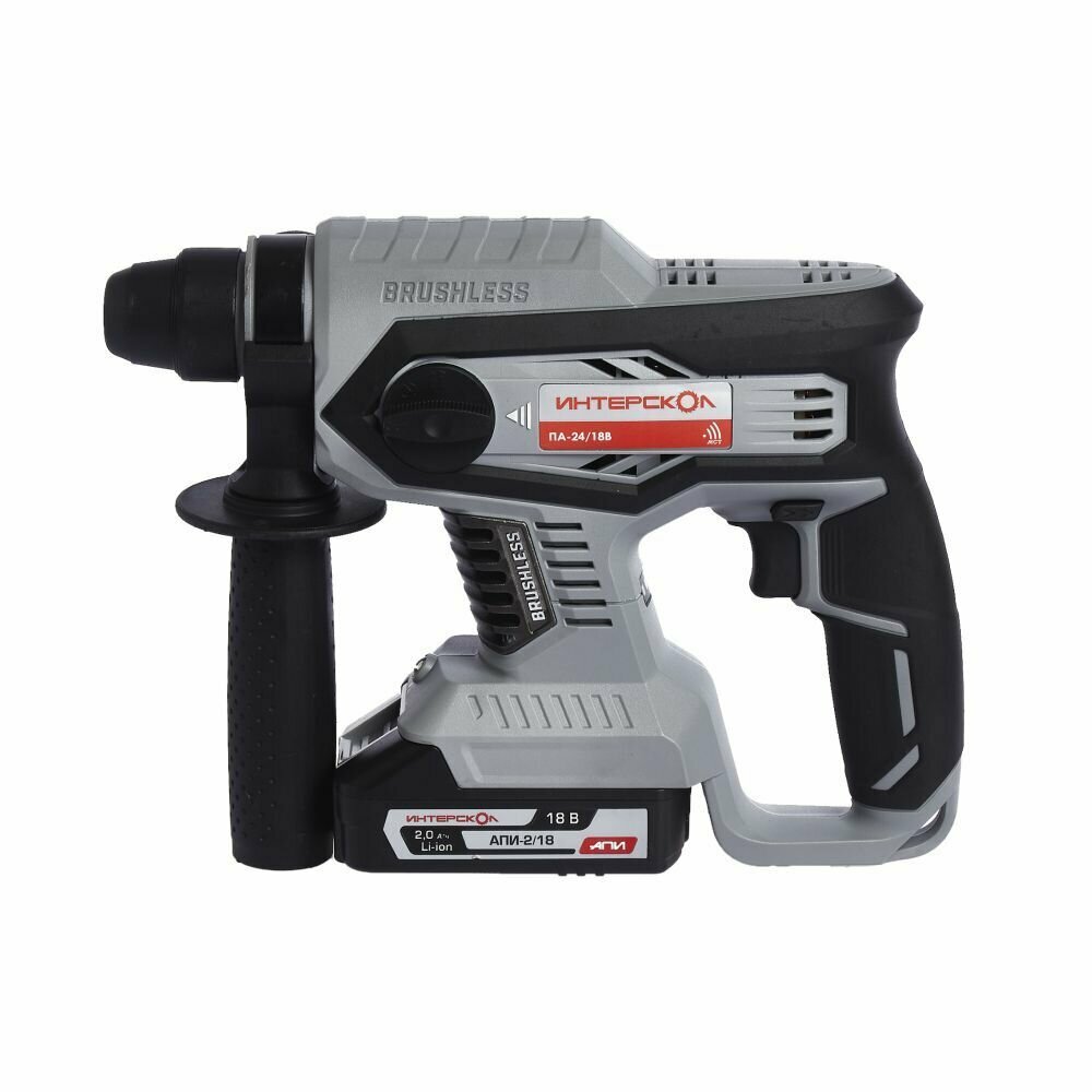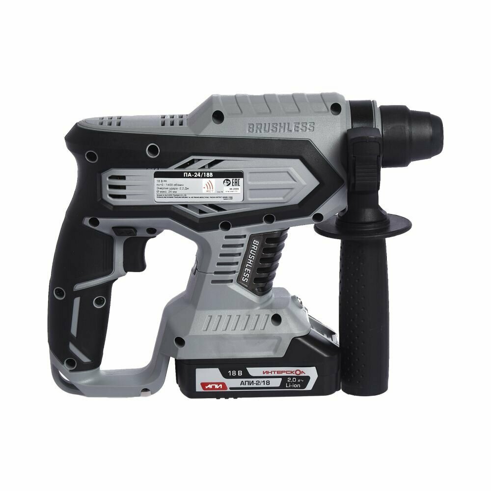 Бесщеточный профессиональный аккумуляторный трехрежимный перфоратор ИНТЕРСКОЛ ПА-24/18ВM с вентильным двигателем.