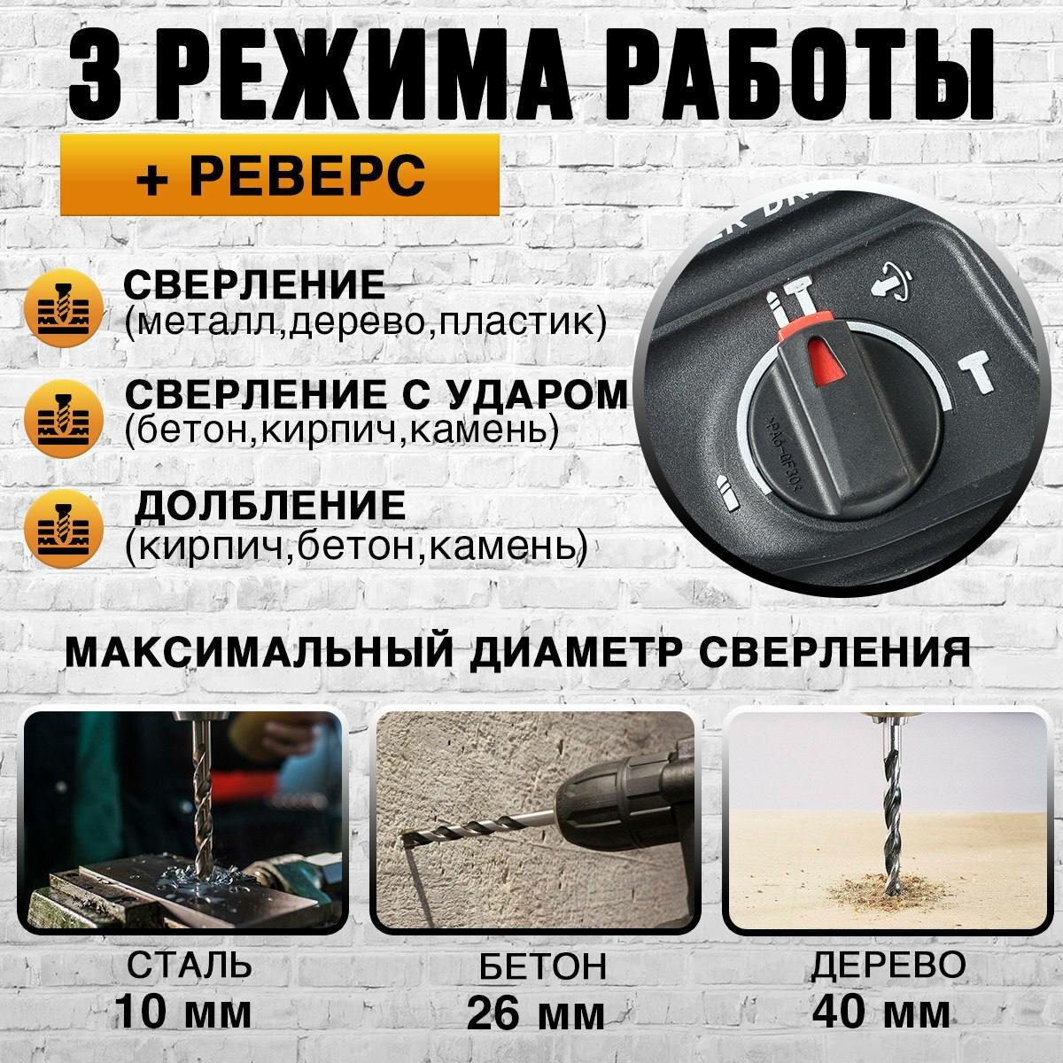 | Режим работы | долбление / сверление / сверление с долблением |
