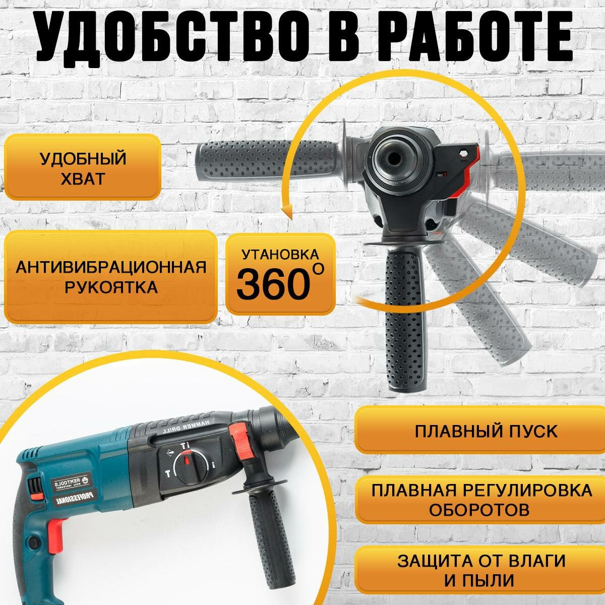 | Особенности конструкции | антивибрационная система / ограничитель глубины сверления |