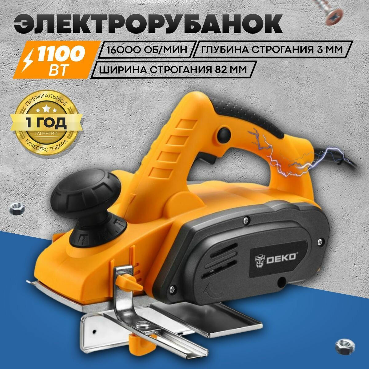 Рубанок 1100Вт DEKO, 16000 информация: