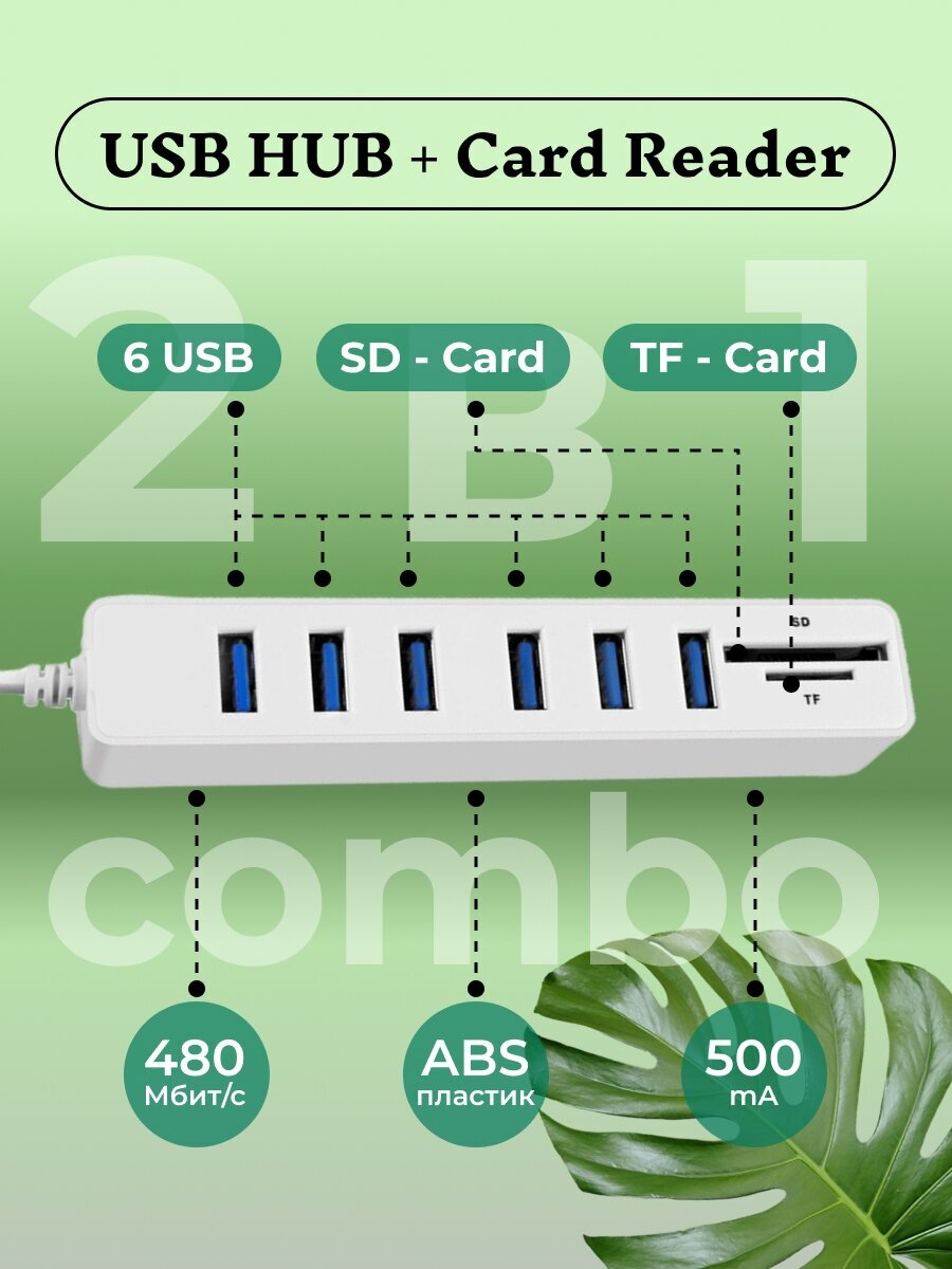 USB HUB 6 (концентратор) + карты памяти SD / TF / картридер USB разветвитель переходник адаптер информация: