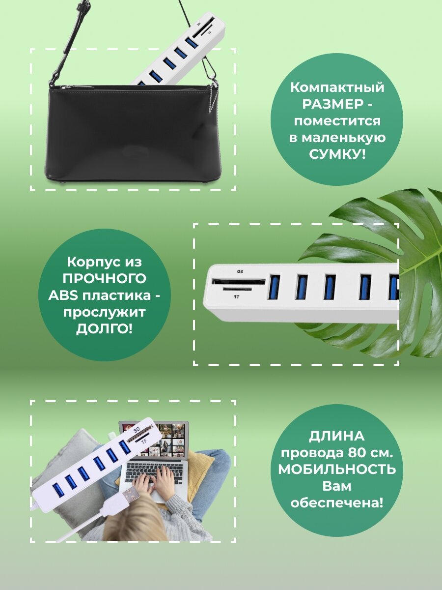 Отзывы на USB HUB 6 (концентратор) + карты памяти SD / TF / картридер USB разветвитель переходник адаптер