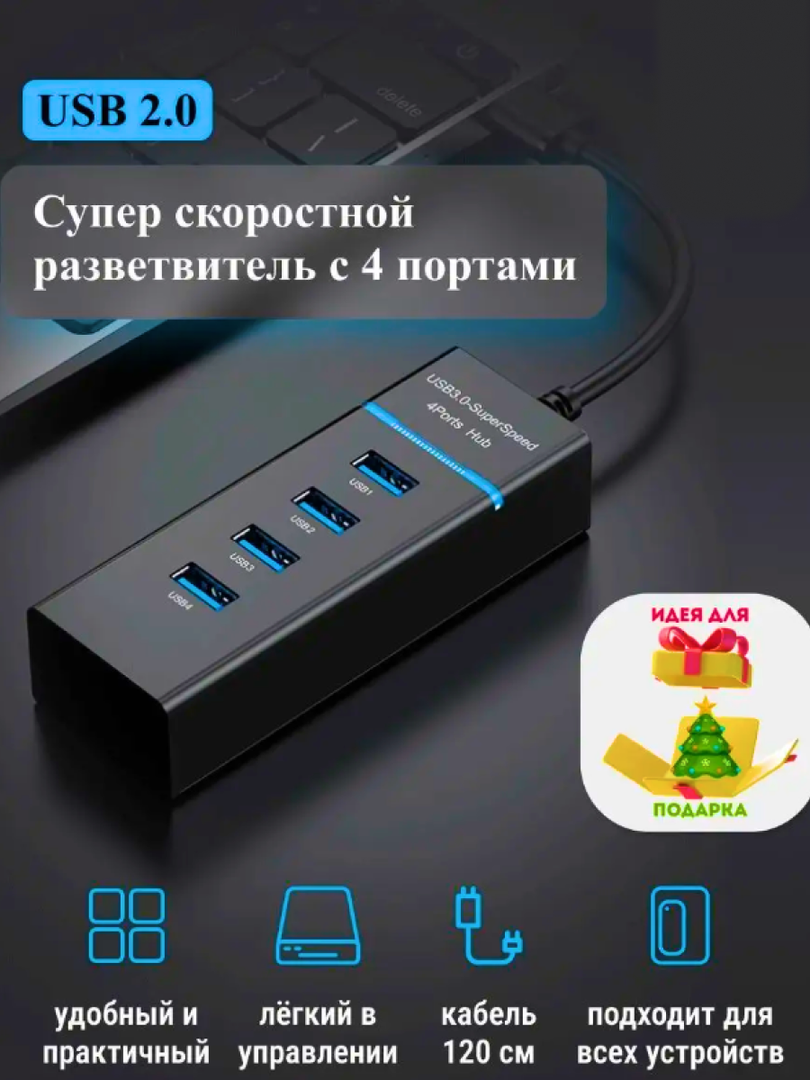 USB концентратор 4-х портовый 3,0, 1,2м информация: