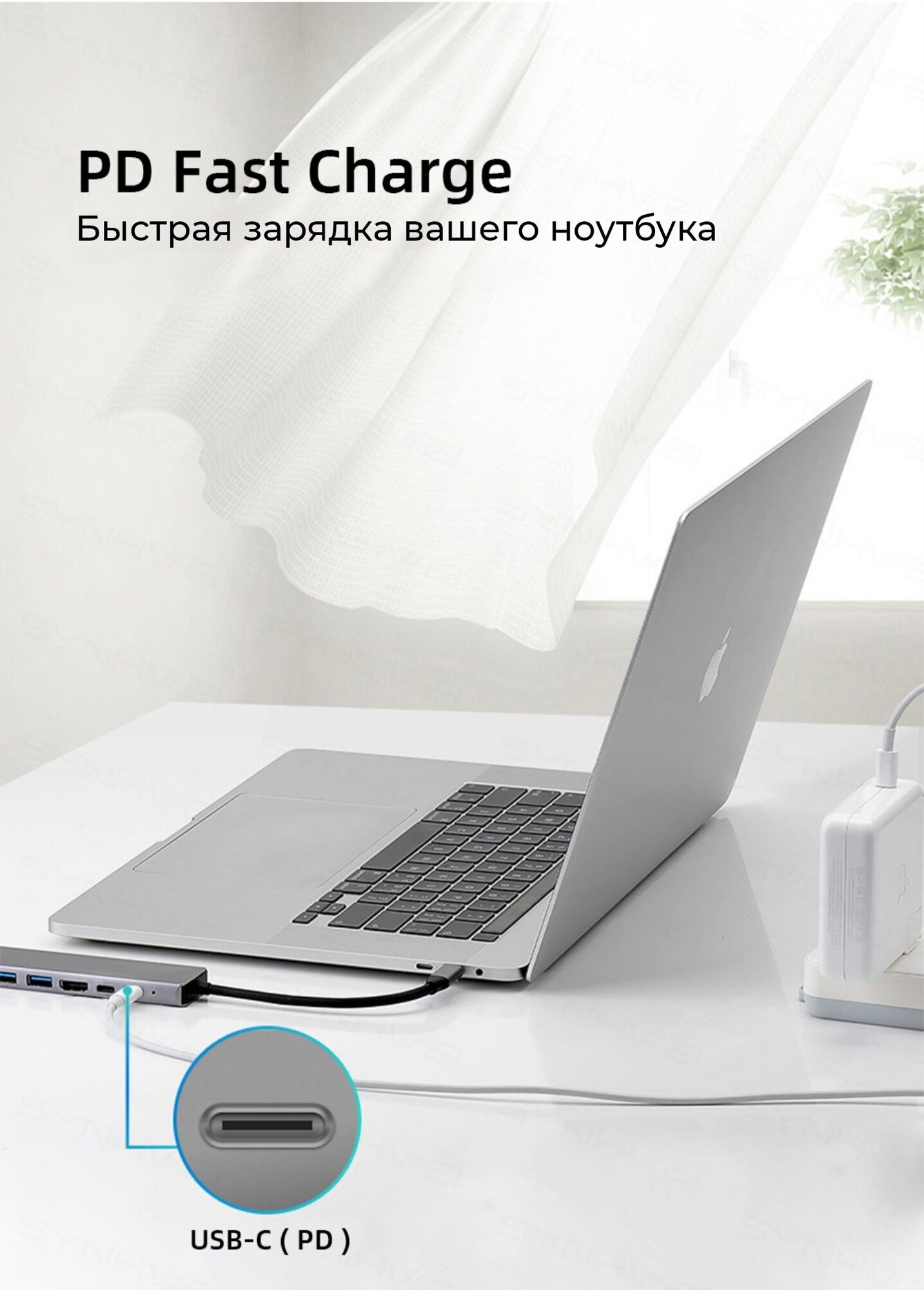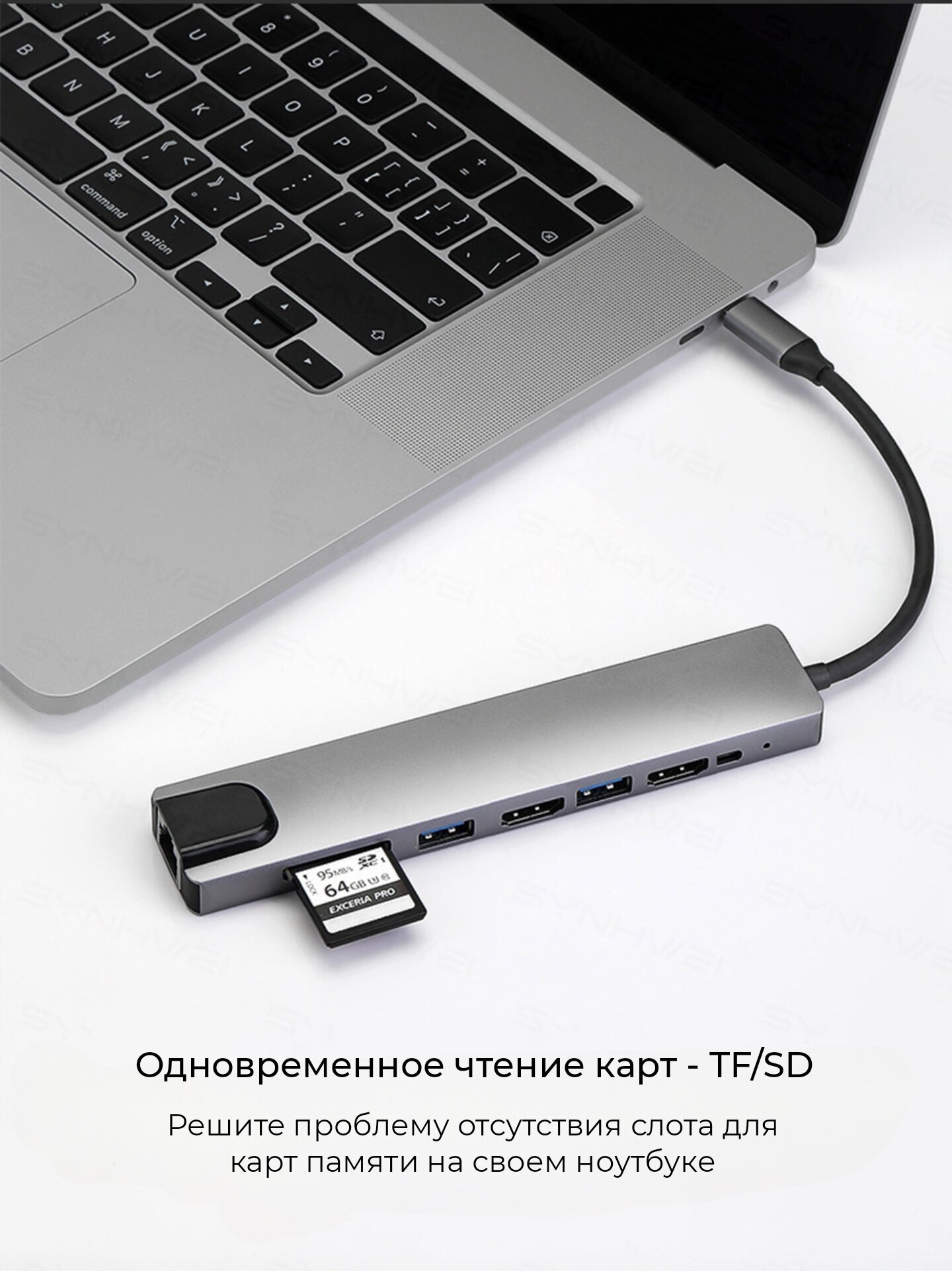 USB хаб 3.0 8 в 1 юсб hub TYPE C адаптер для ноутбука, Разветвитель с 4K для компьютера информация: