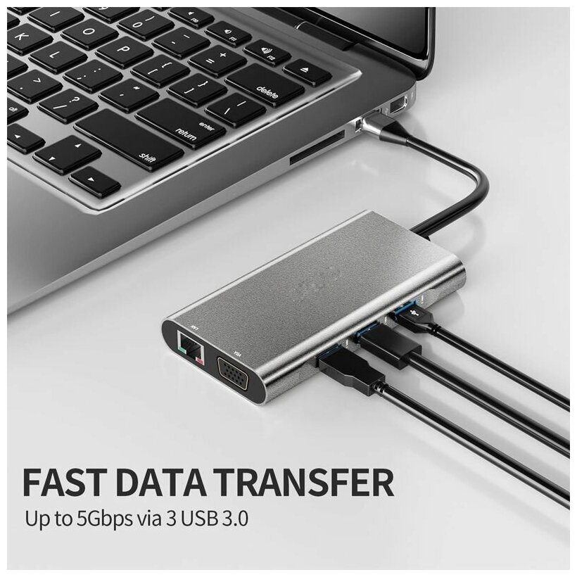 10 цен на USB-концентратор с Type-C HDMI | RJ-45 | VGA | 3xUSB 3.0 | AUX | Type-C | SD | TF | PD