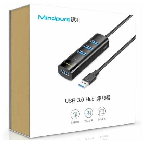 Отзывы на USB концентратор Хаб / Hub 3.0 4 USB + Type-C разъем питания Mindpure US022 17cм Черный