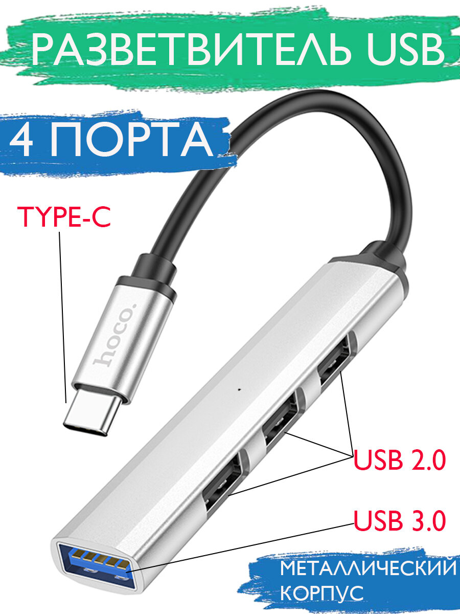 Разветвитель USB Type-C для ноутбука 4 порта/ HUB/ переходник информация: