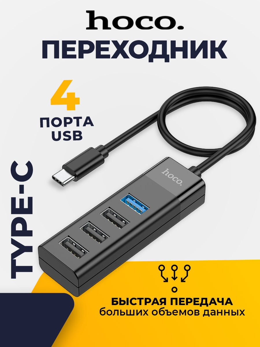 Переходник Hoco HB41 USB концентратор 4 в 1 (USB to USB 3.0 х 4), 1.2М