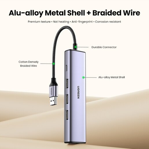 Отзывы на USB-концентратор UGreen CM475, 60554, разъемов: 4, 10 см, серый