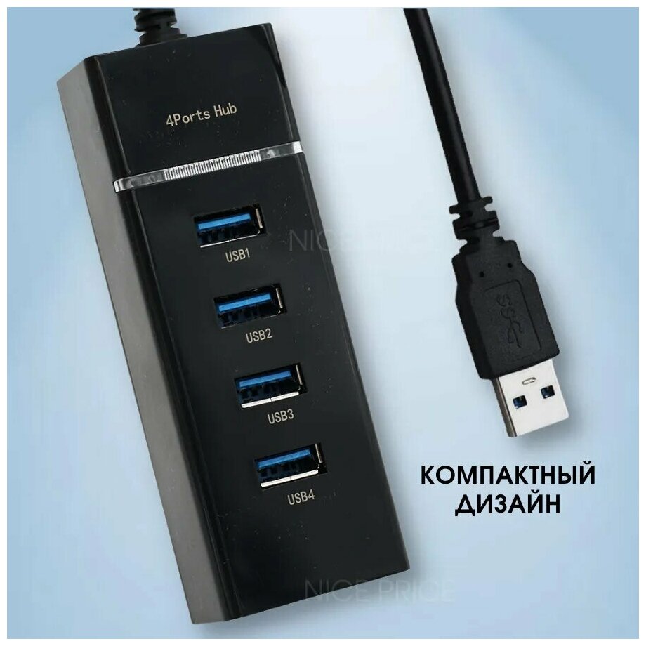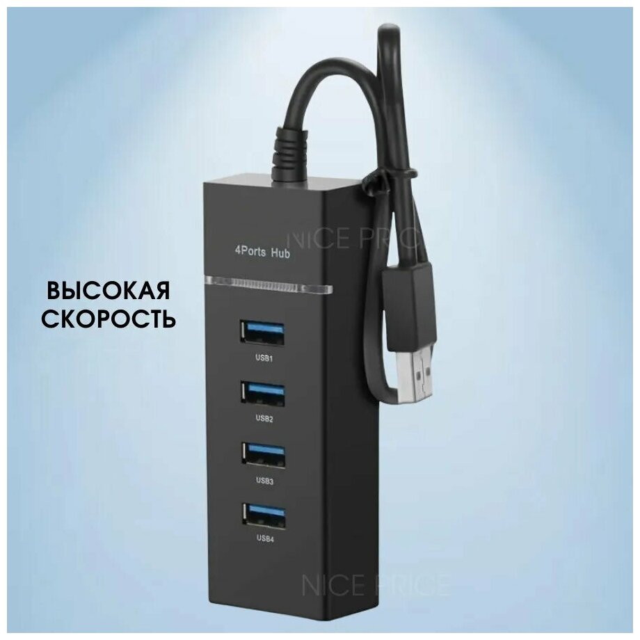 Отзывы на Разветвитель USB 3.0 на 4 порта / 4 USB концентратор с проводом 0,3 м / Универсальный хаб разветвитель / Hub USB 3.0 4 Ports / Цвет черный