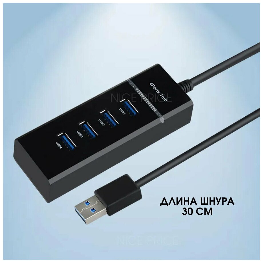 10 цен на Разветвитель USB 3.0 на 4 порта / 4 USB концентратор с проводом 0,3 м / Универсальный хаб разветвитель / Hub USB 3.0 4 Ports / Цвет черный