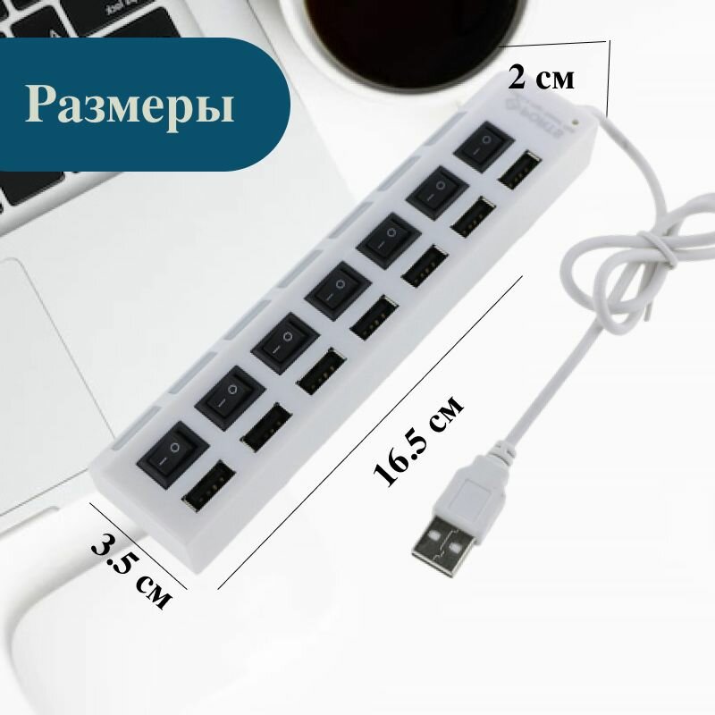 Usb Hub, USB-концентратор USB 2.0 на 7 Порта, HUB разветвитесь с выключателями, USB-ХАБ для периферийных устройств белый информация:
