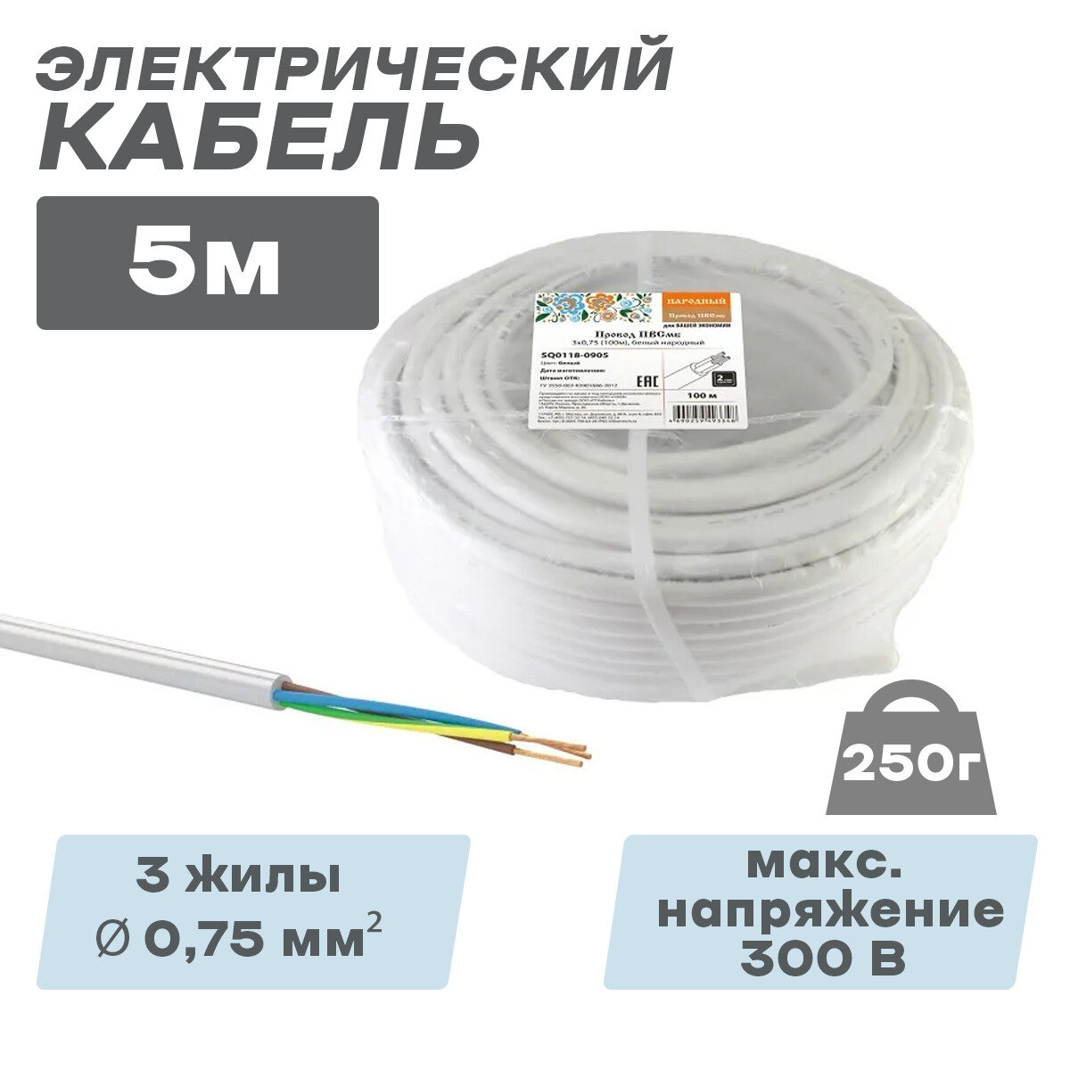10 цен на TDM Провод ПВСмб 3х0,75 5м, белый Народный SQ0118-0505