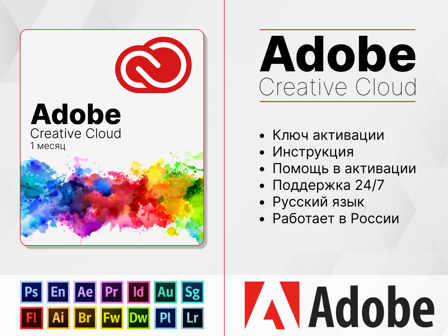 ADOBE CREATIVE CLOUD 1 месяц (Электронный ключ, Работает в России, активация на новом аккаунте, Русский язык) информация: