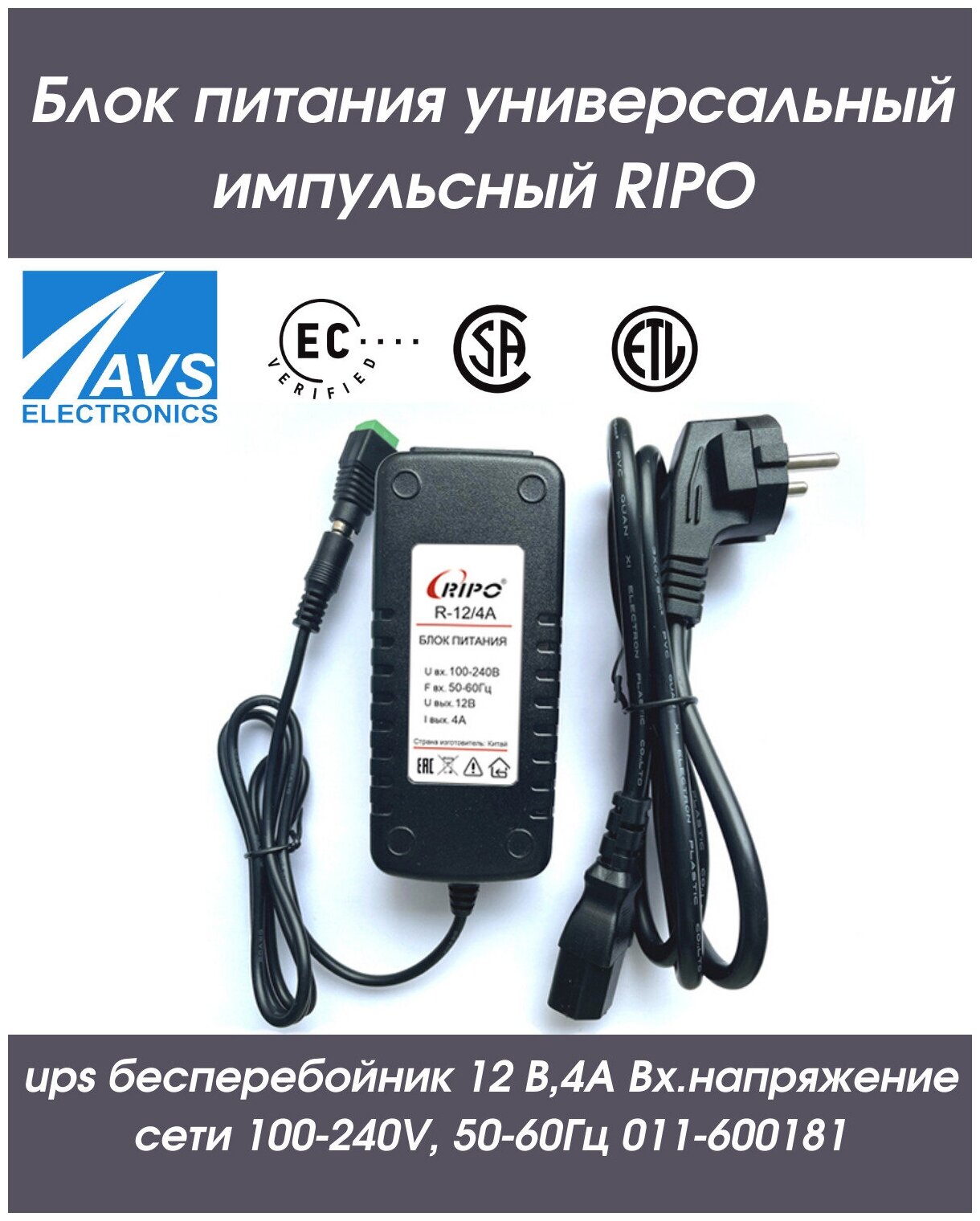 Зарядное устройство сетевое блок питания универсальный импульсный RIPO ups бесперебойник 12 В, 4А Вх.напряжение сети 100-240V, 50-60Гц ибп 011-600181 информация: