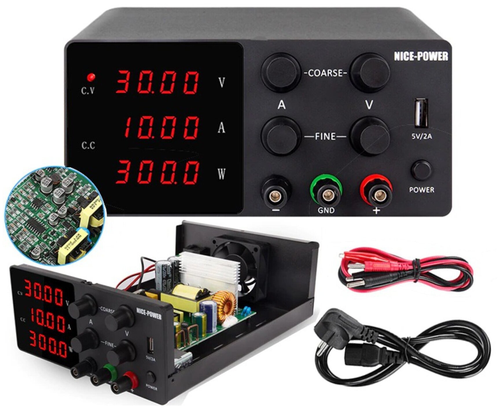 Цифровой лабораторный источник питания (блок питания) 0-30В 0-10А с USB подключением и комплектом кабелей (У) информация: