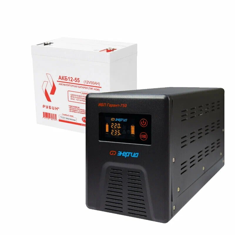 10 цен на Инвертор(ИБП) Энергия Гарант 750+ АКБ Рубин 12V 55Ah