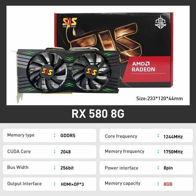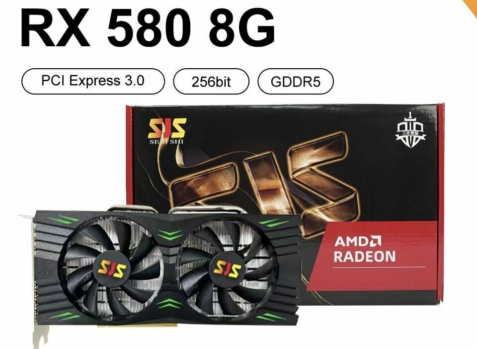 SJS Видеокарта AMD Radeon 580 8G 256Bit GDDR58G 256Bit GDDR5 AMD GPU, графические карты для геймеров Radeon 580 Radeon 8 ГБ информация: