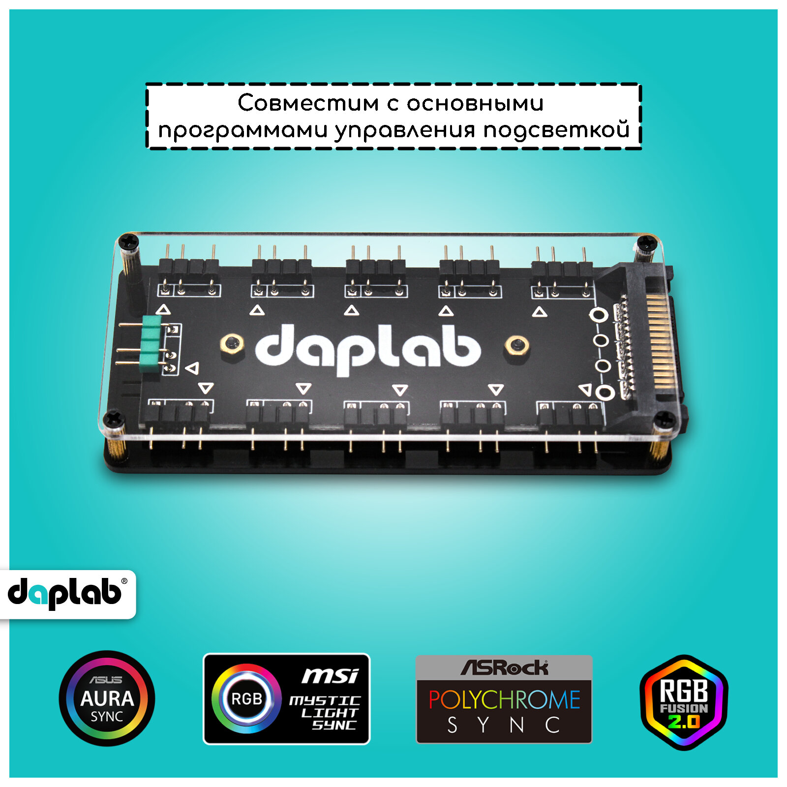 Разветвитель ARGB хаб под стеклом для ПК до 10 устройств, 5V/3pin ARGB HUB, SATA информация: