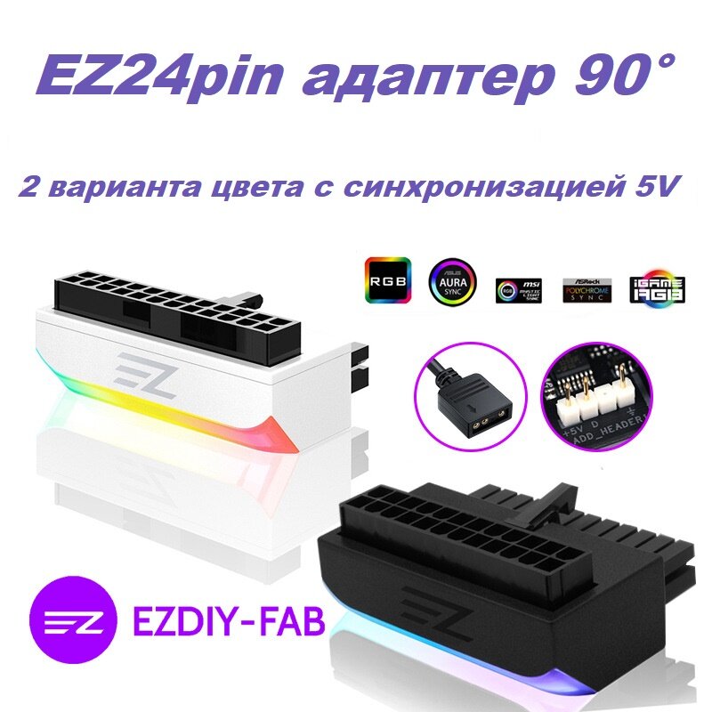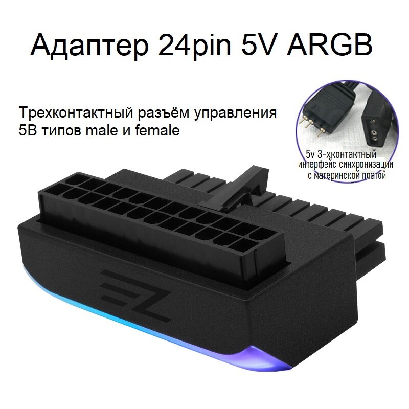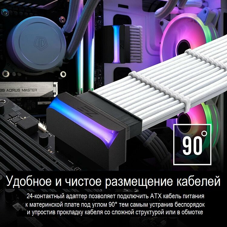 Отзывы на ARGB адаптер с подсветкой Г-образный 24 pin 90 градусов для материнской платы ATX черный