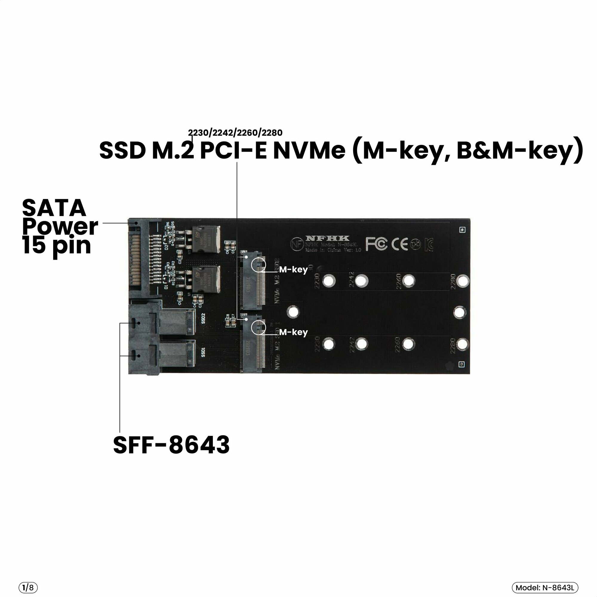 Отзывы на Адаптер-переходник M.2 2230-2280 PCI-E NVMe (x2) > U.2 SFF-8643 (x2) + доп. питание SATA (15 pin), черный, N-8643L