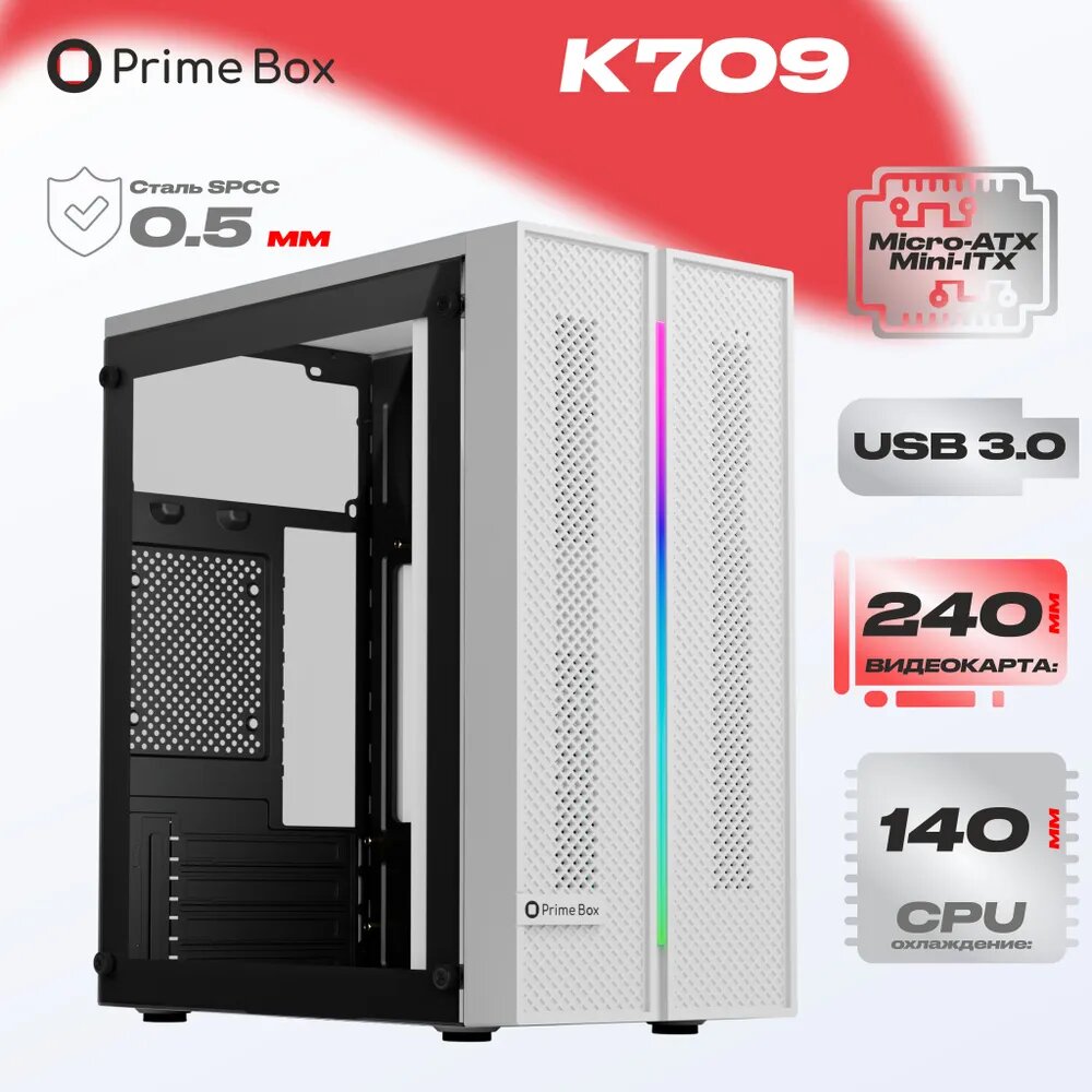 Корпус Prime Box К709 RGB (2 - USB 2.0; 1 - USB 3.0) белый Micro-ATX, Mini-ITX информация: