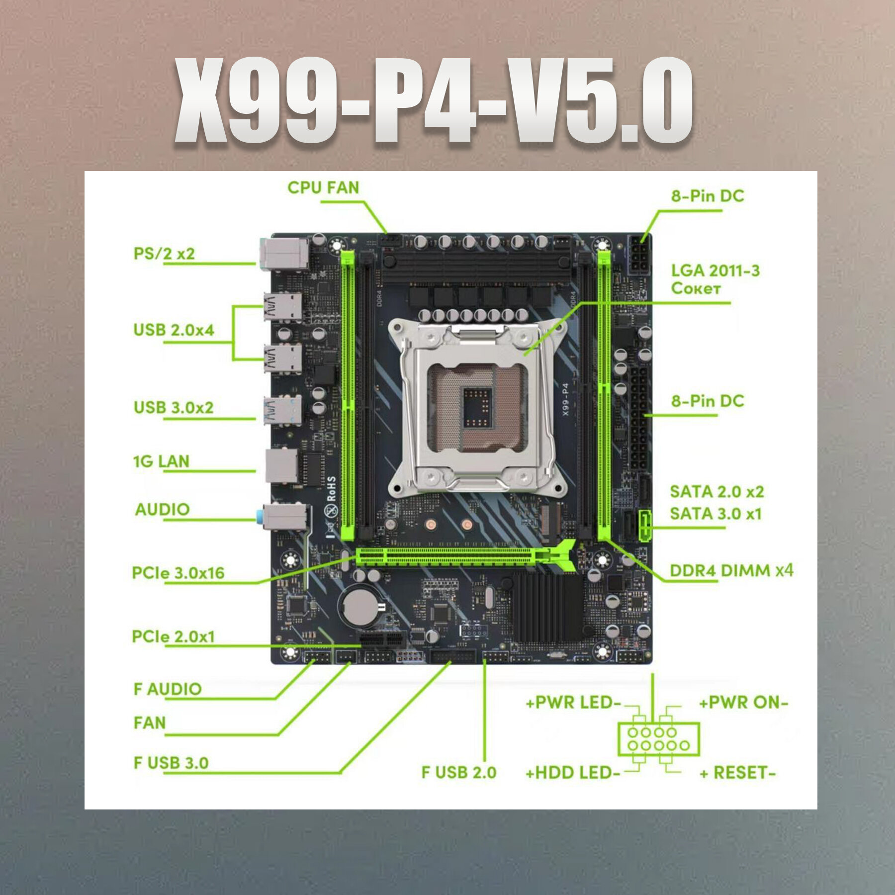 Комплект материнская плата Amentmen X99-B4 + Xeon 2690V3 + 32GB DDR4 ECC REG 2x16GB Blue