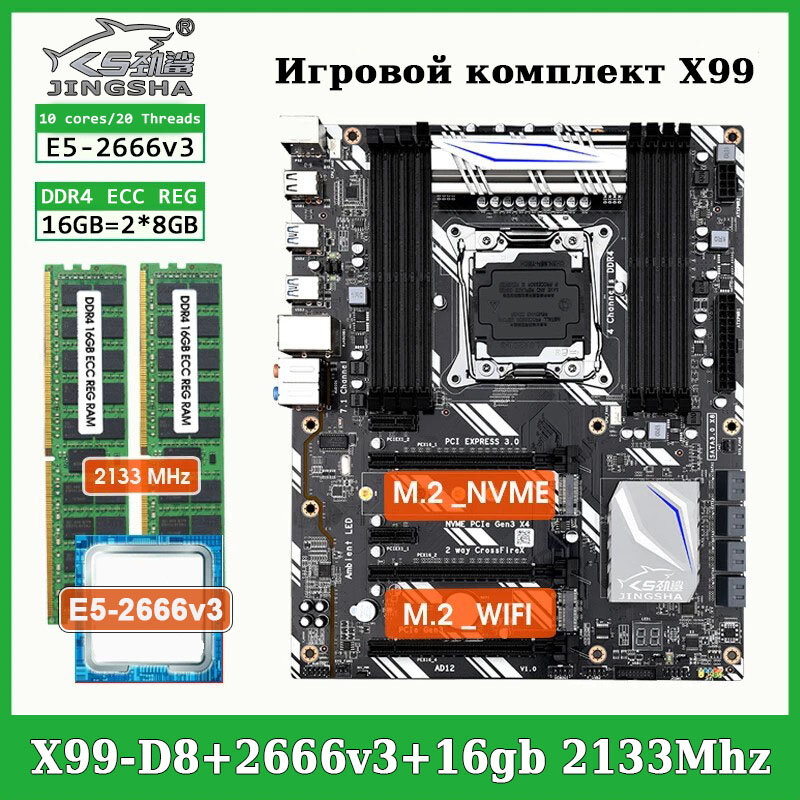 10 цен на Комплект материнская плата Jingsha X99 D8 + Xeon 2666V3 + 16GB DDR4 ECC REG