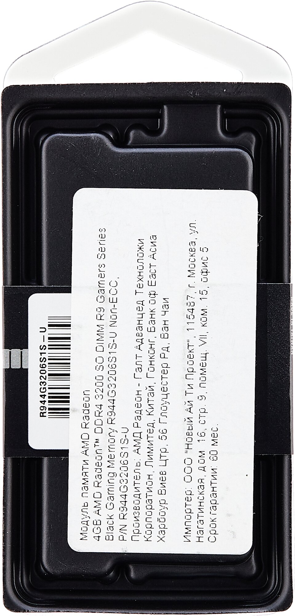 Память DDR4 4GB 3200MHz AMD R944G3206S1S-U R9 RTL PC4-25600 CL22 SO-DIMM 260-pin 1.2В Ret информация: