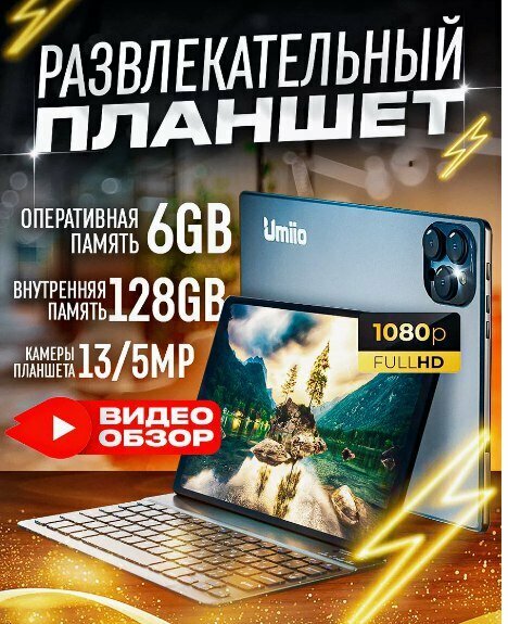 Планшет с клавиатурой Umiio Р60 Pad. 2 sim, 10.1" 6GB 128GB, планшет андроид 12 OS игровой со мышкой