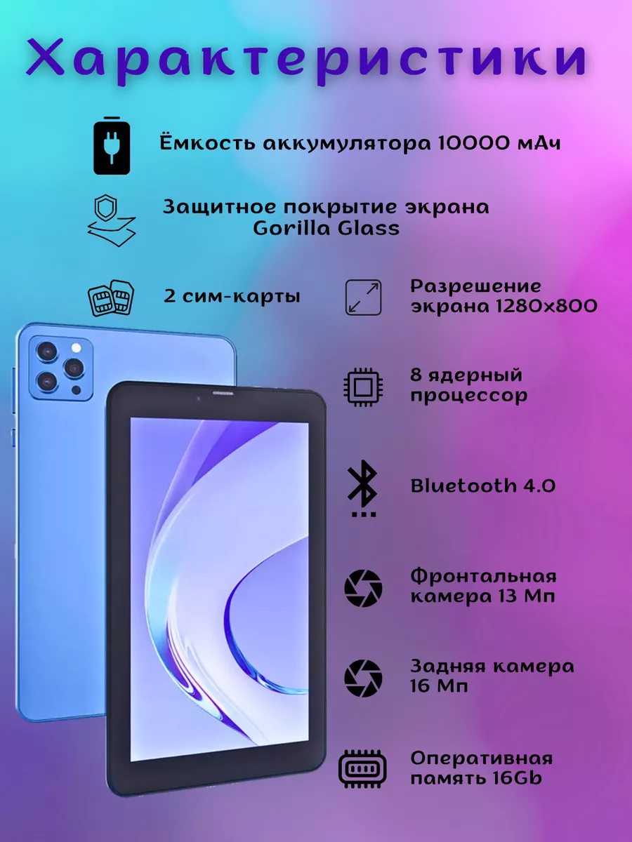 Дюймовый планшет Y7, память 16+512 ГБ, поддержка нескольких голосов, аккумулятор 8800 мАч