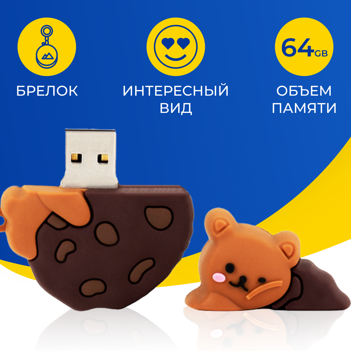 USB Флешка / Оригинальная подарочная флешка USB 64GB / Флеш память ЮСБ 64 ГБ / Внешний накопитель USB Flash Drive (Мишка с печенькой) информация: