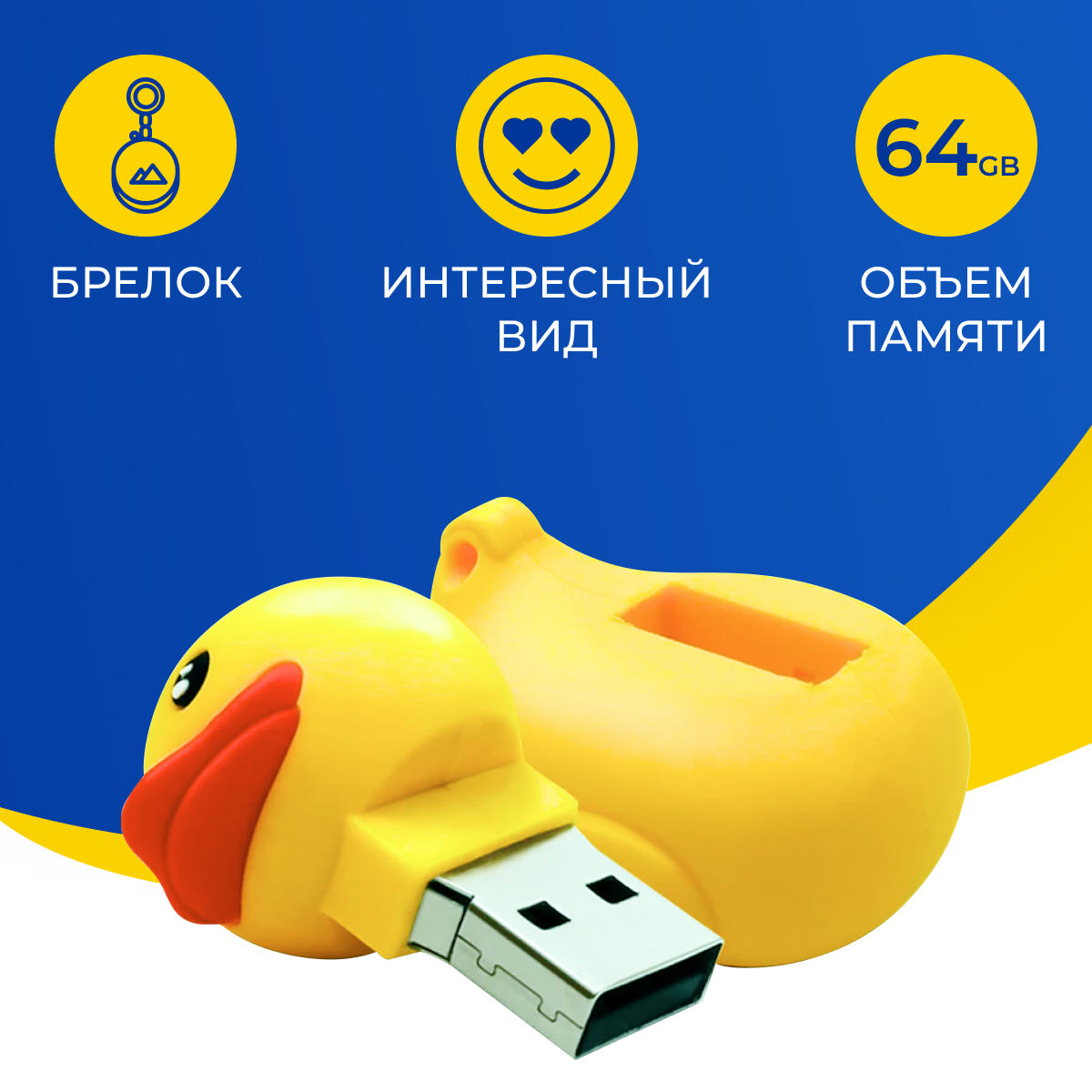 USB Флешка / Оригинальная подарочная флешка USB 64GB / Флеш память ЮСБ 64 ГБ / Внешний накопитель USB Flash Drive (Утенок) информация: