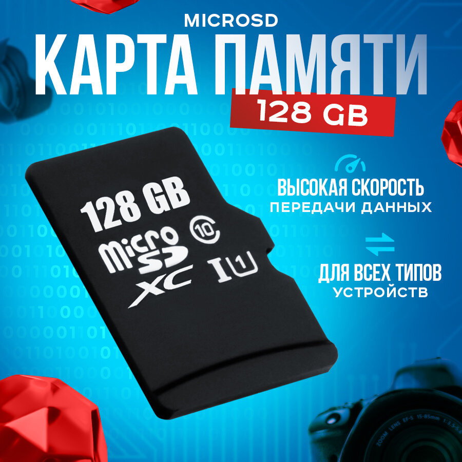 Карта памяти 128 Гб microSDXC, переходник на SD, 10 класс скорости информация: