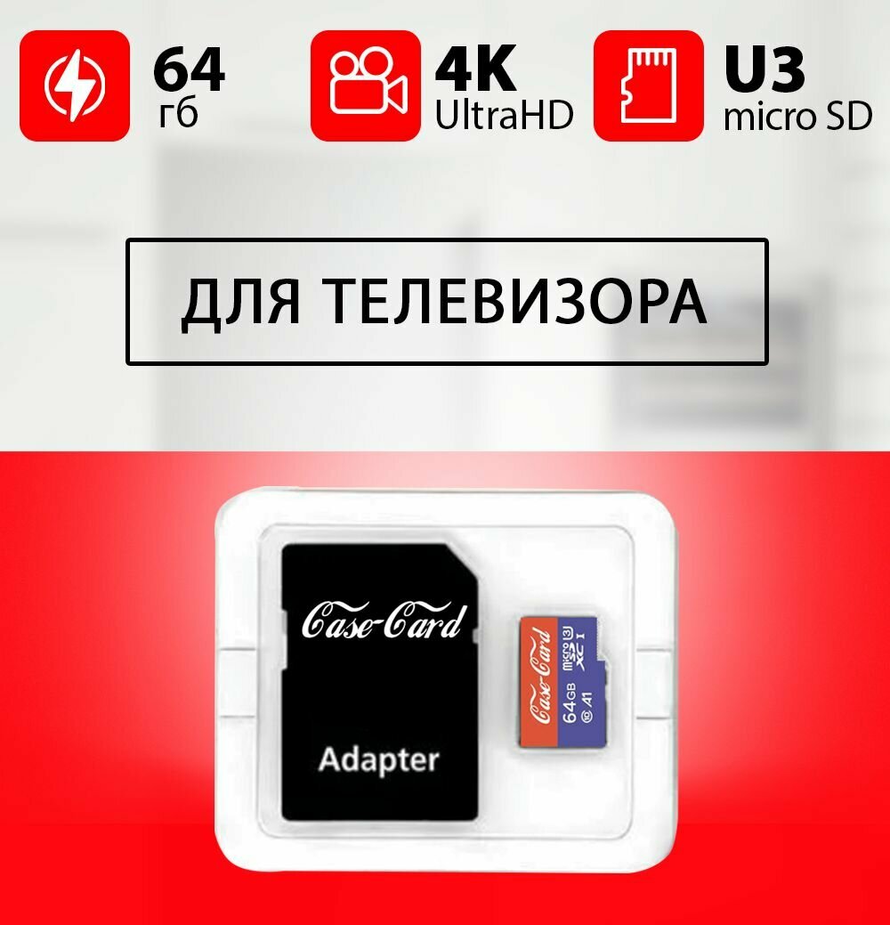 Карта памяти для телевизора Самсунг, LG, Haier, Sony, Dexp / флешка 64 гб U3 V30 формат MicroSDXC UHS-1 4K Ultra HD информация: