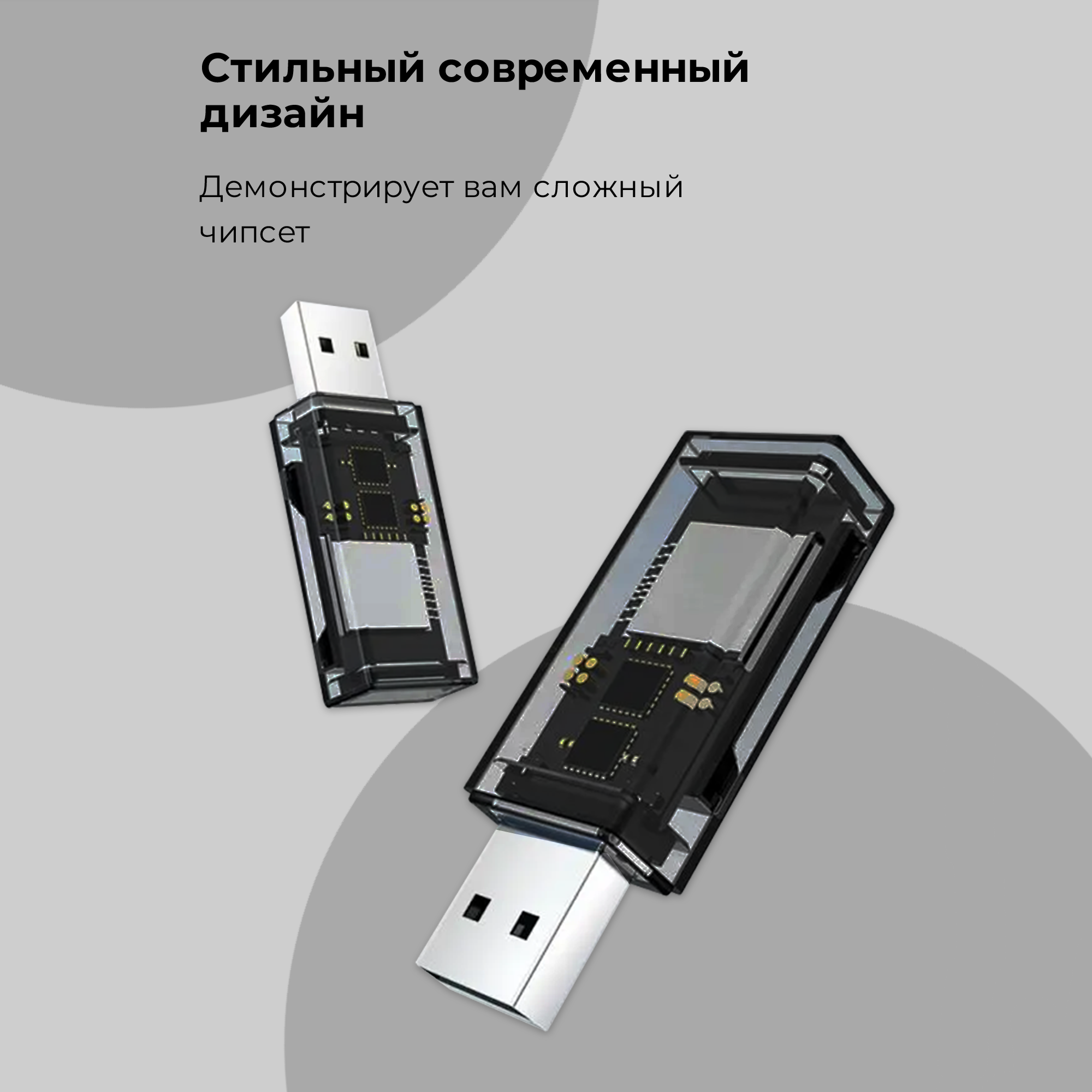 Внешний картридер USB, WALKER, WCD-70, переходник адаптер для карты памяти microsd в sd, card reader для пк, устройство чтения, черный информация: