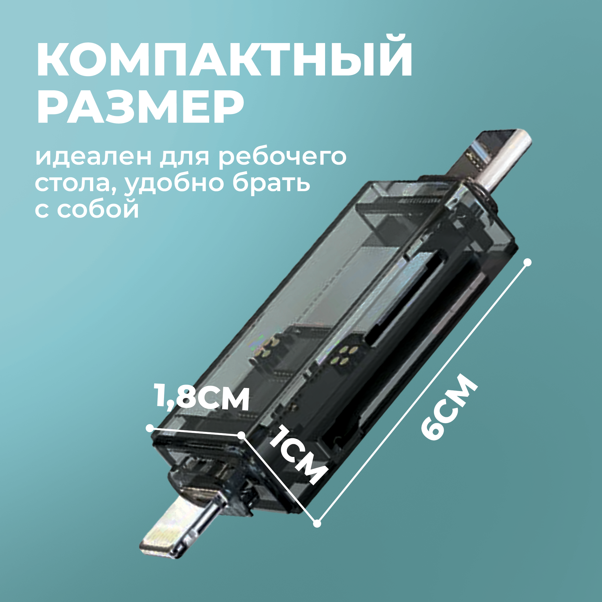 Отзывы на Внешний картридер, WALKER WCD-71 SD/micro SD, Type-C-Lightning, переходник адаптер для карты памяти, card reader, картридер, устройство чтения, черный