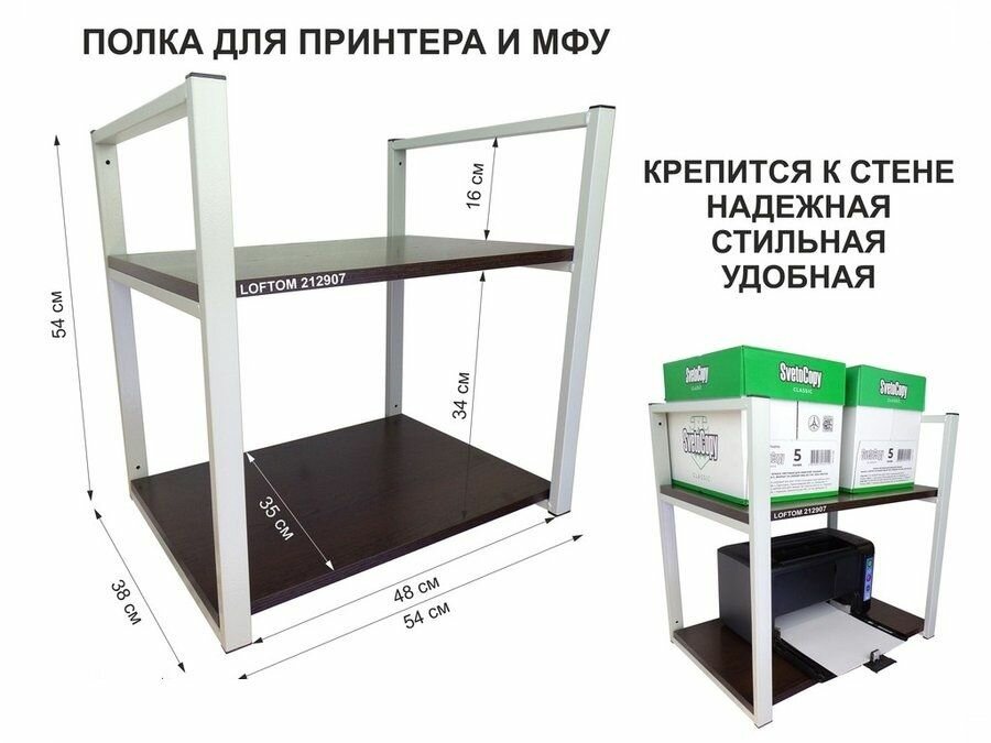 Отзывы на Полка под принтер или МФУ, для техники, высота 54см, серая 2 уровня, 35х54см, венге