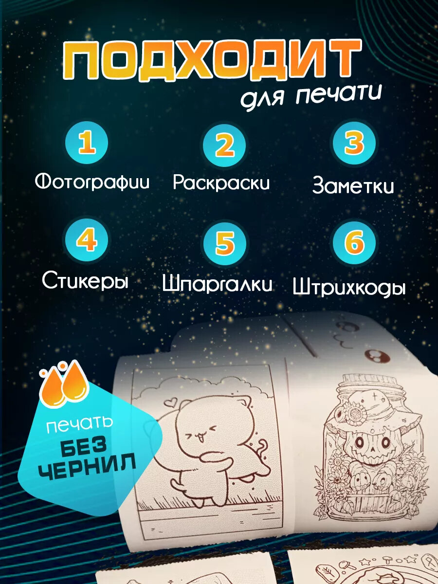 | Комплектация | минипринтер+ 5 рулонов белой бумаги+ 5 самоклеящейся бумаги+ 3 рулона цветной бумаги + фломастеры |