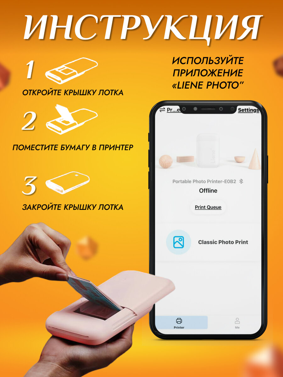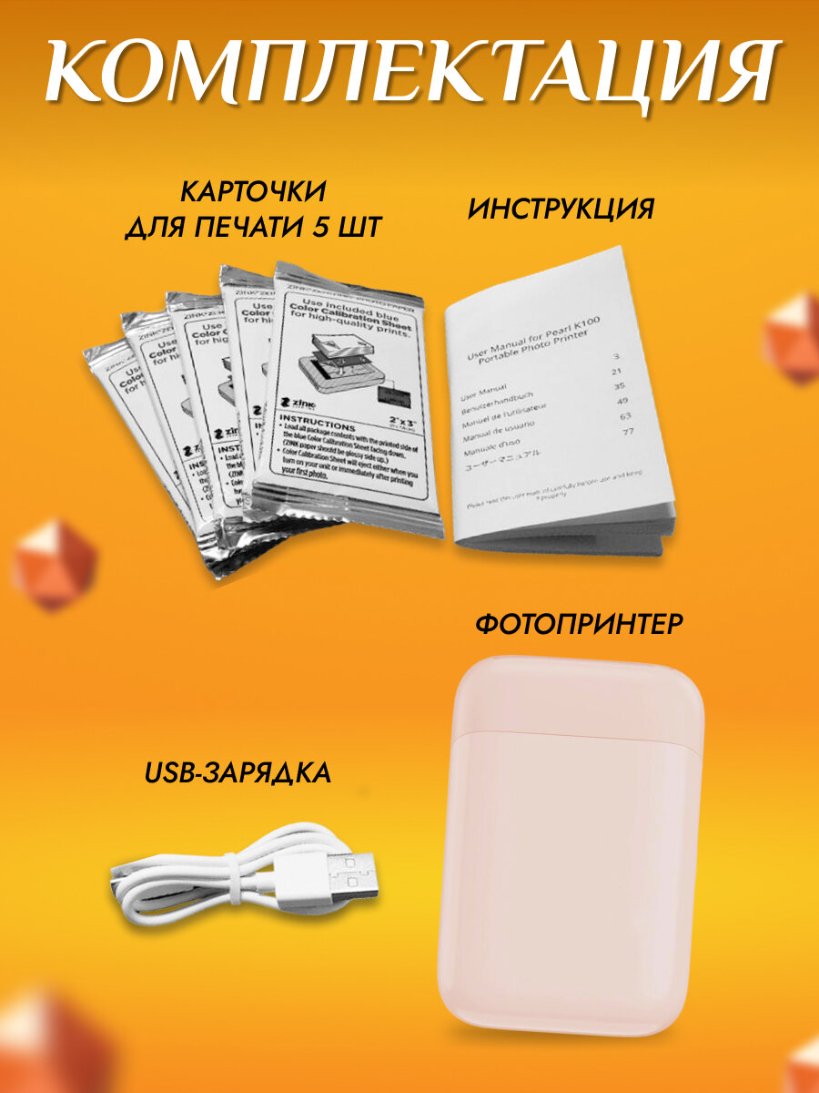 | Дополнительная информация | Мини принтер портативный, печать по технологии zink.Цветная печать на клейкой фотобумаге zink размером 5х7.6см |
