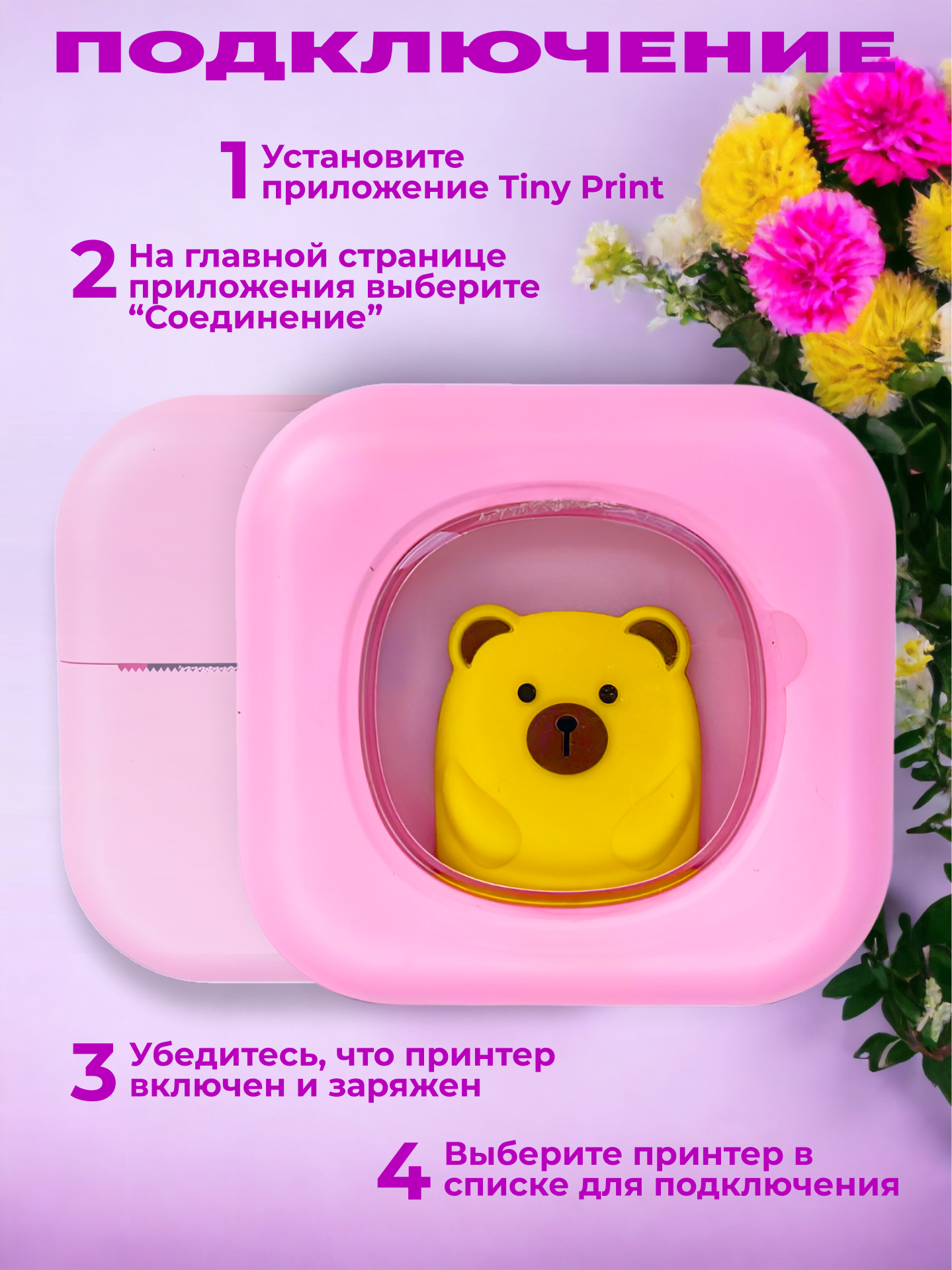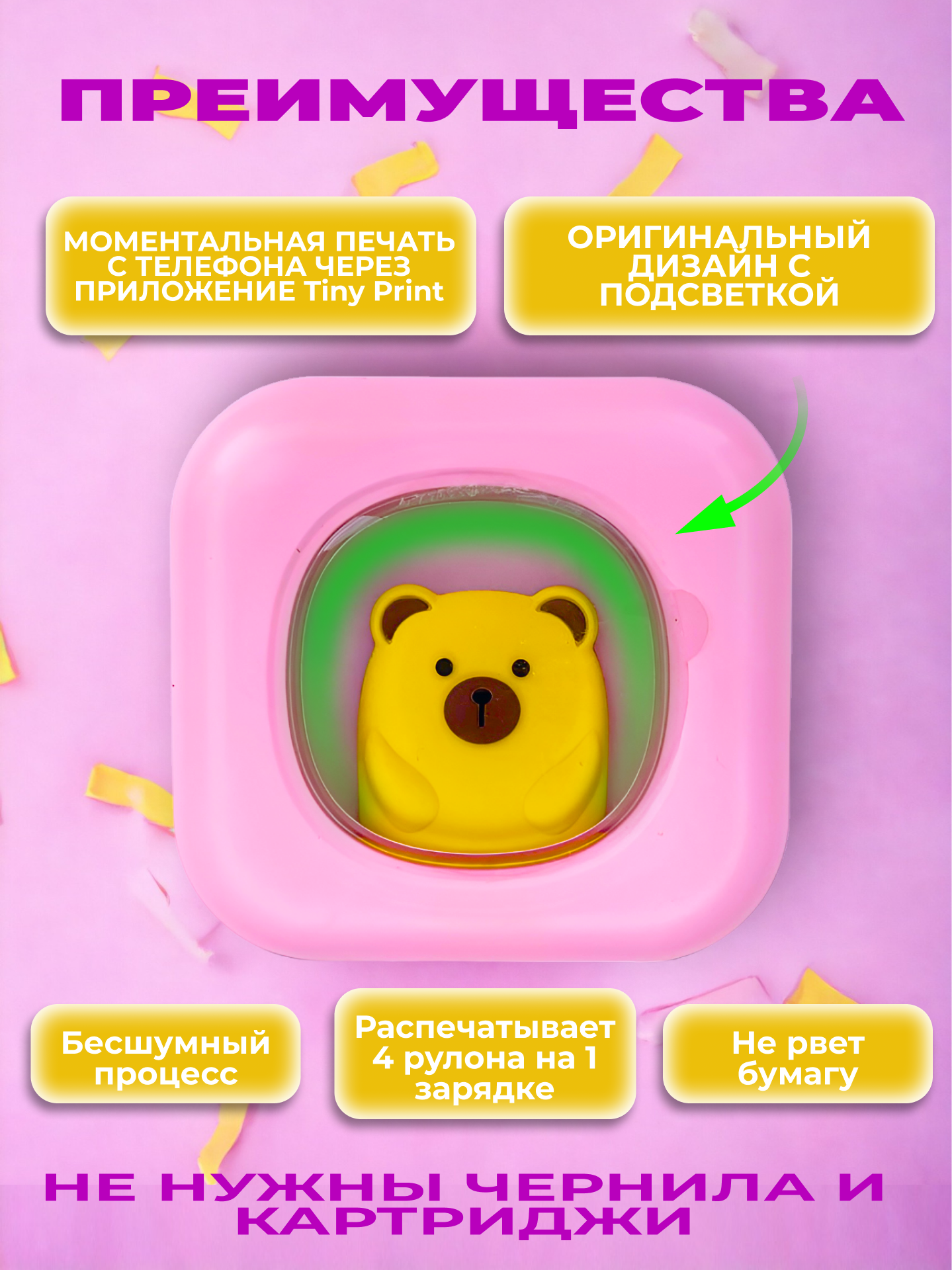 Мини принтер детский для телефона с подсветкой информация: