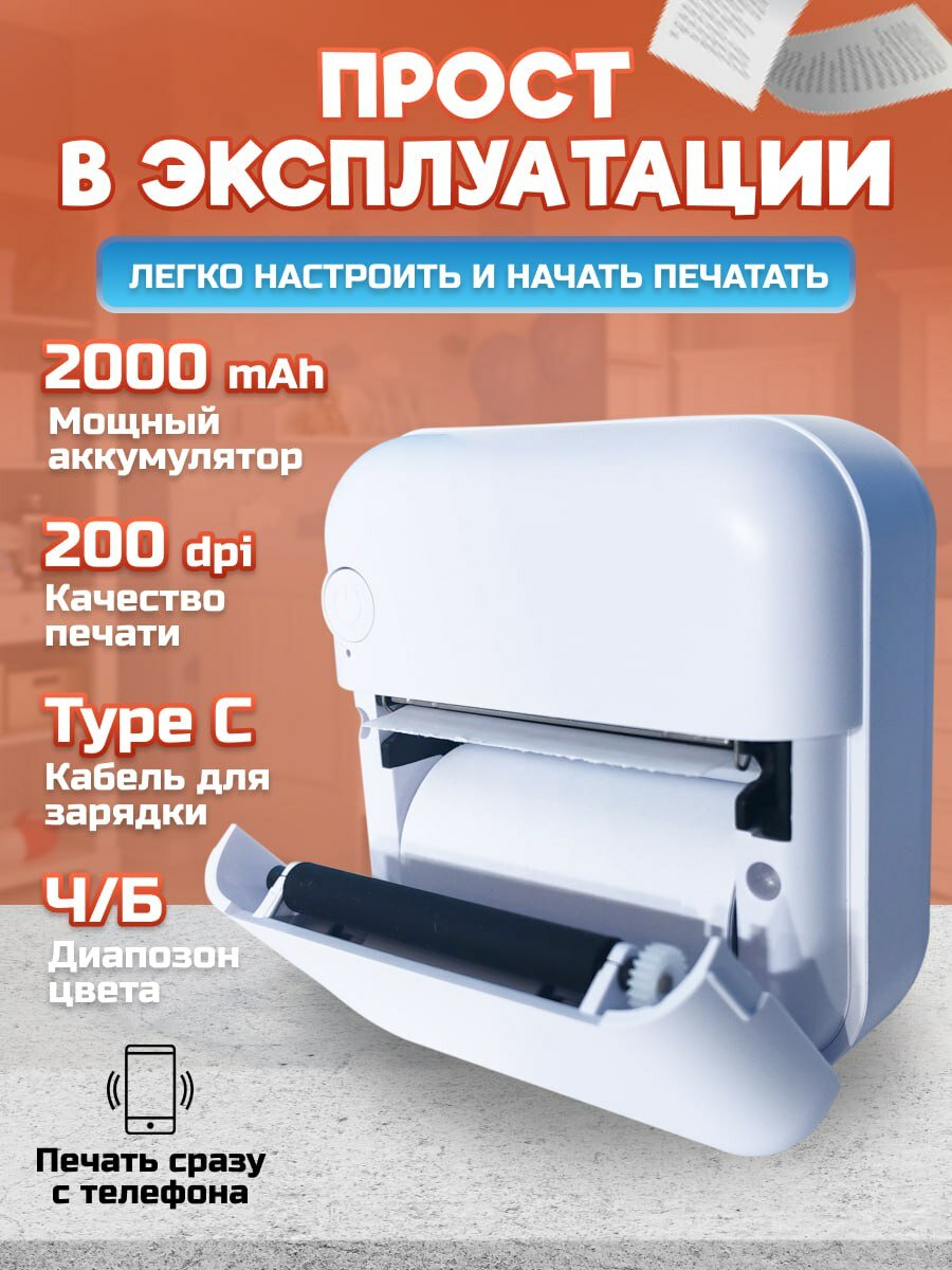 Беспроводной портативный мини термопринтер информация: