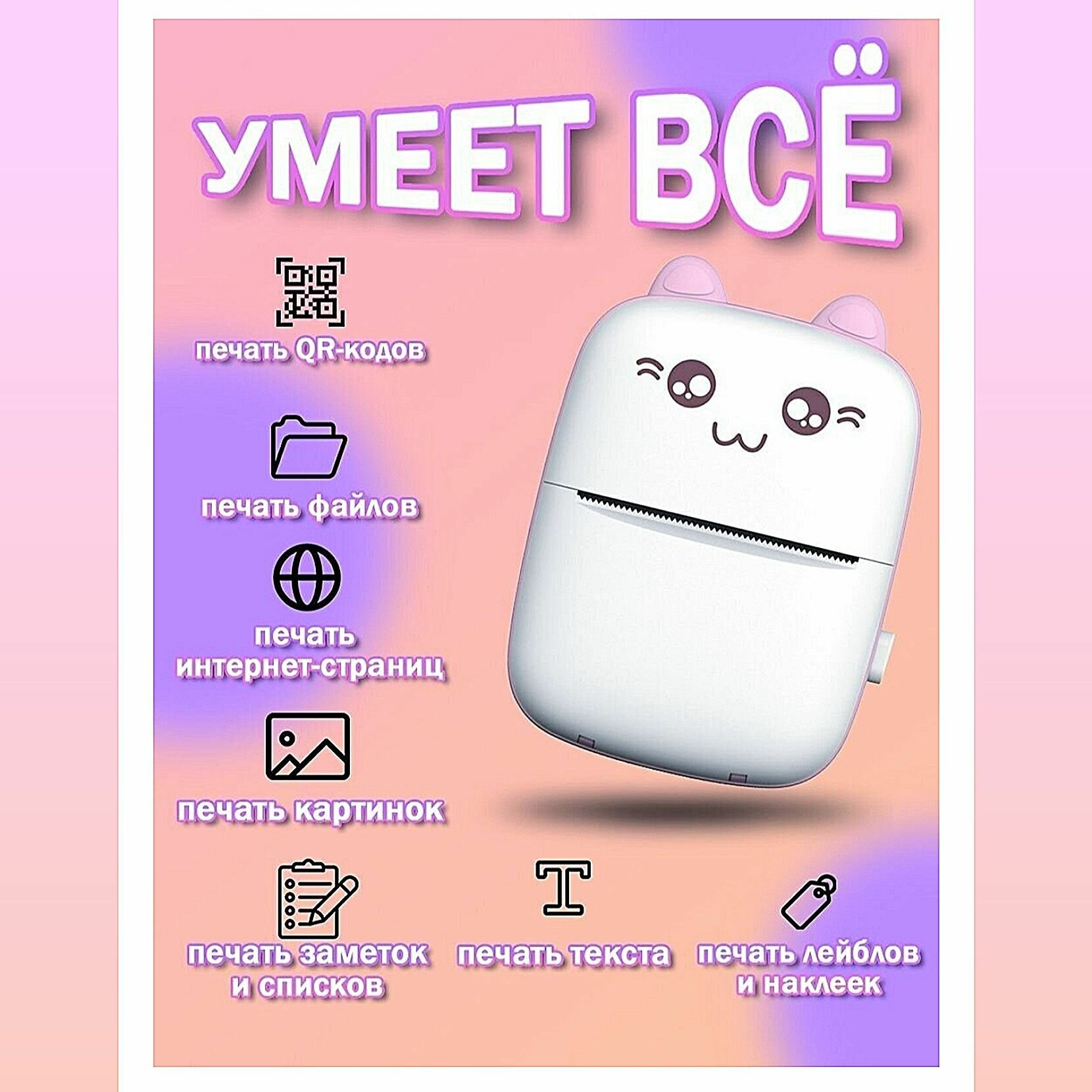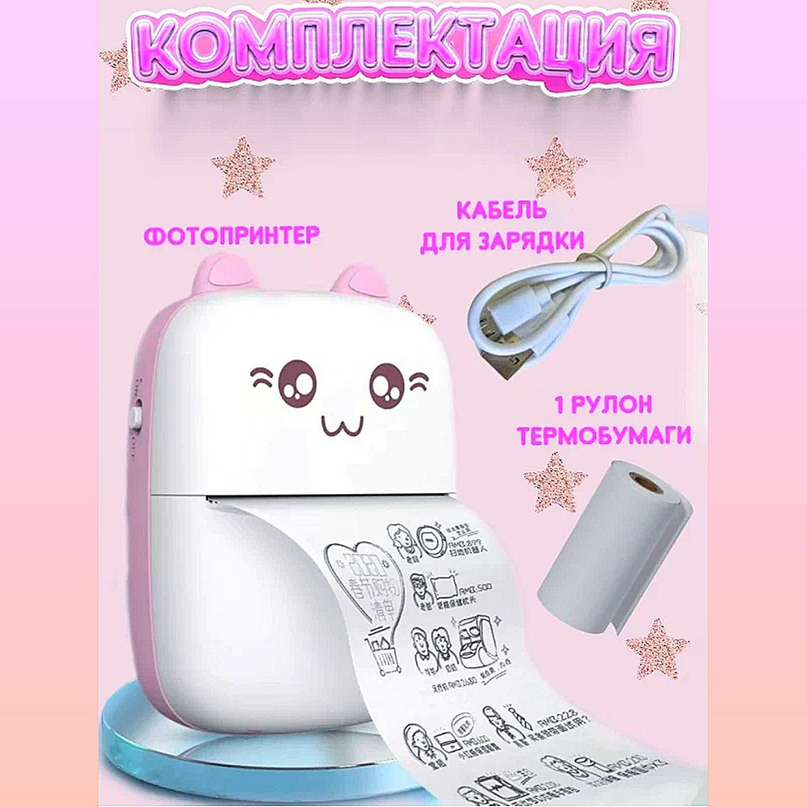 | Комплектация | Мини принтер, руководство по эксплуатации, провод для зарядки устройства |