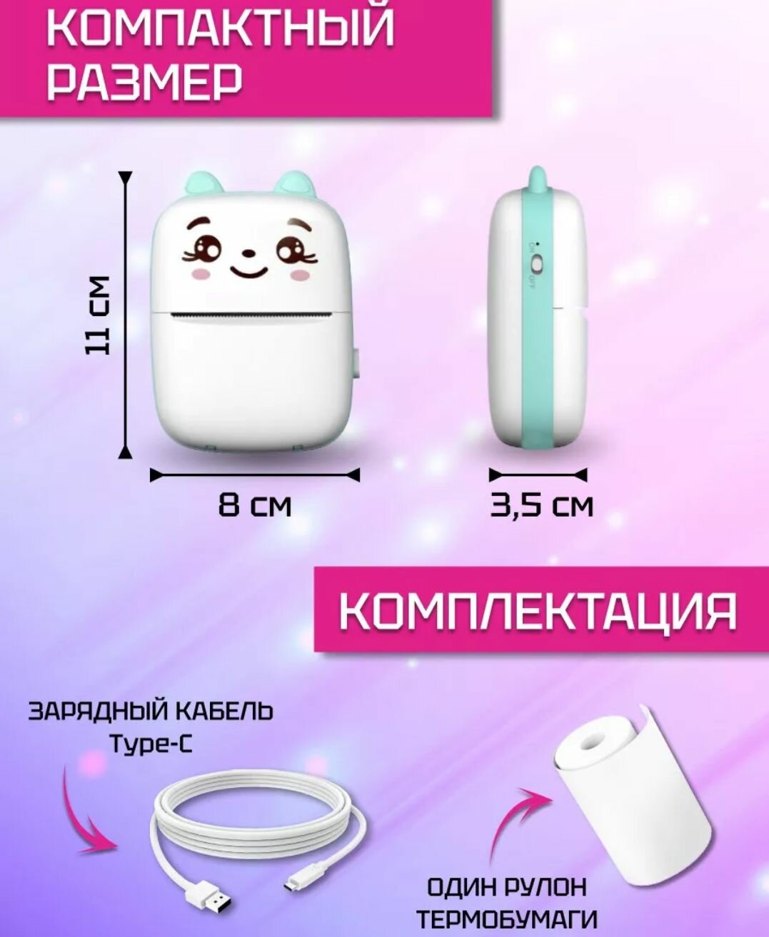 Мини принтер портативный для фото и наклеек информация: