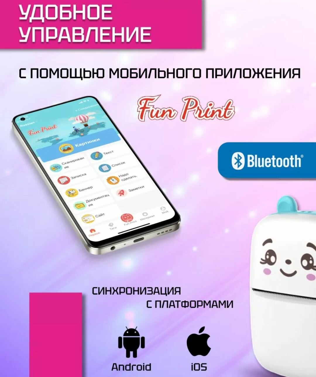 Мини принтер, термопринтер, фотопринтер для мобильного телефона