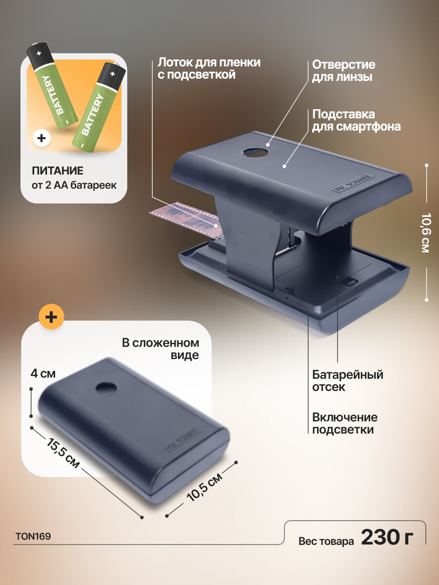 Мобильный сканер пленок для 35 негативов TON169 информация: