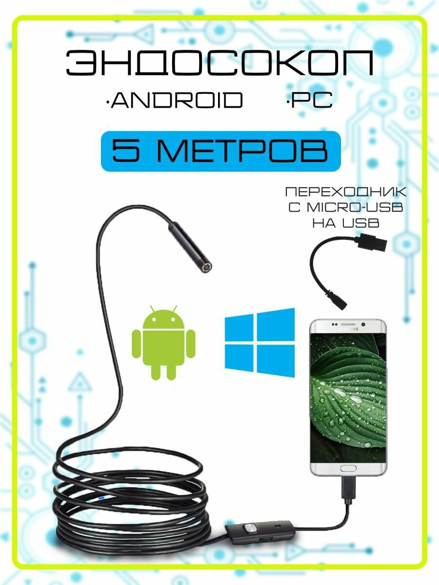 Эндоскоп 5м для Android и PC, USB эндоскоп для труднодоступных мест, гибкая камера видеонаблюдения для смартфона и компьютера информация: