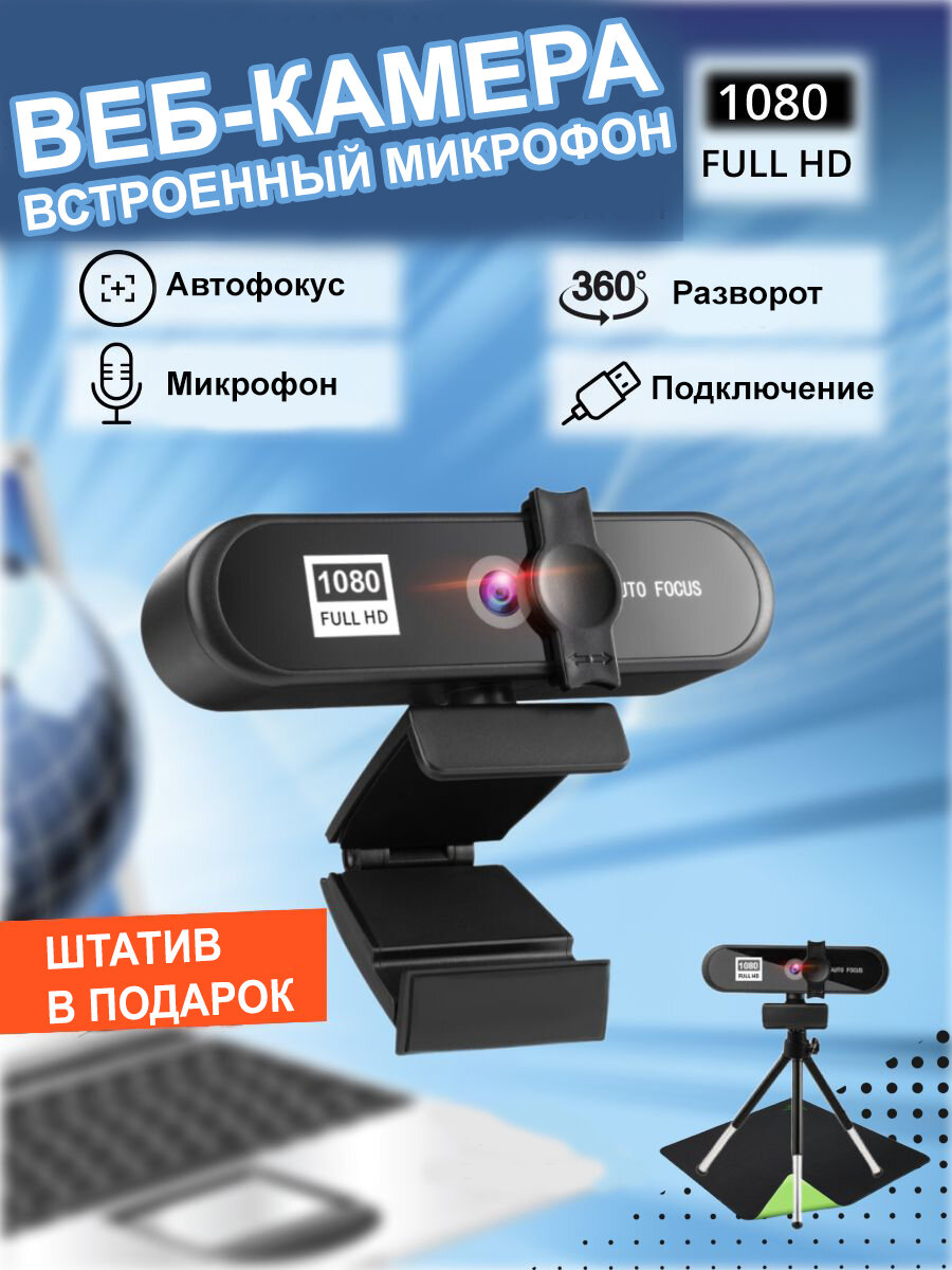 Веб камера с микрофоном и штативом для компьютера ноутбука 1080P информация: